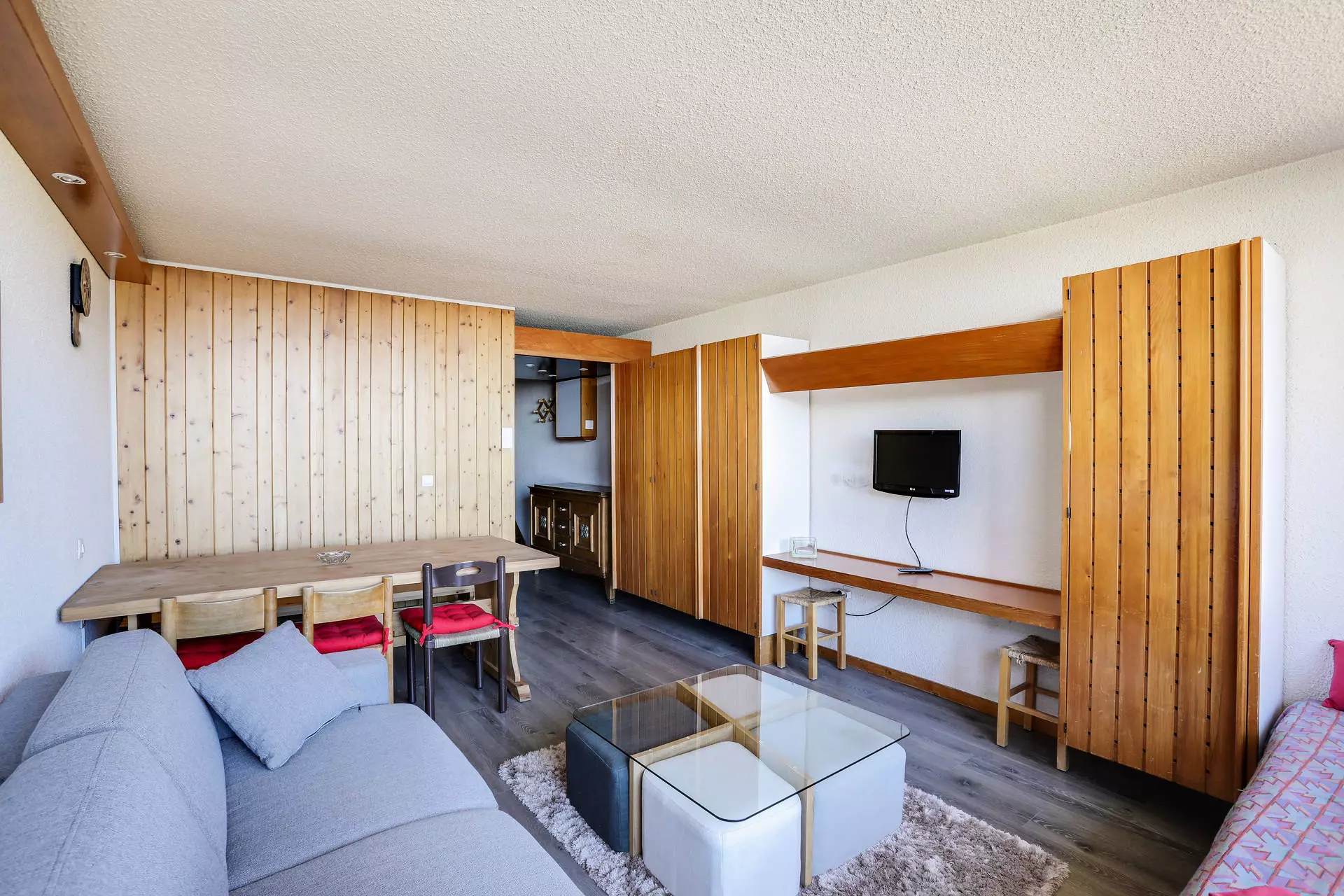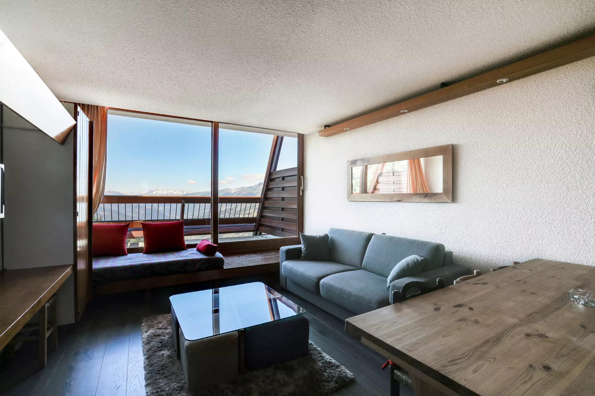 Pour vos vacances au ski ou vos vacances d'été dans la station d'Arc 1600, réservez cet appartement de 2 pièces qui bénéficie d'un balcon exposé Sud avec une vue sur la vallée.
