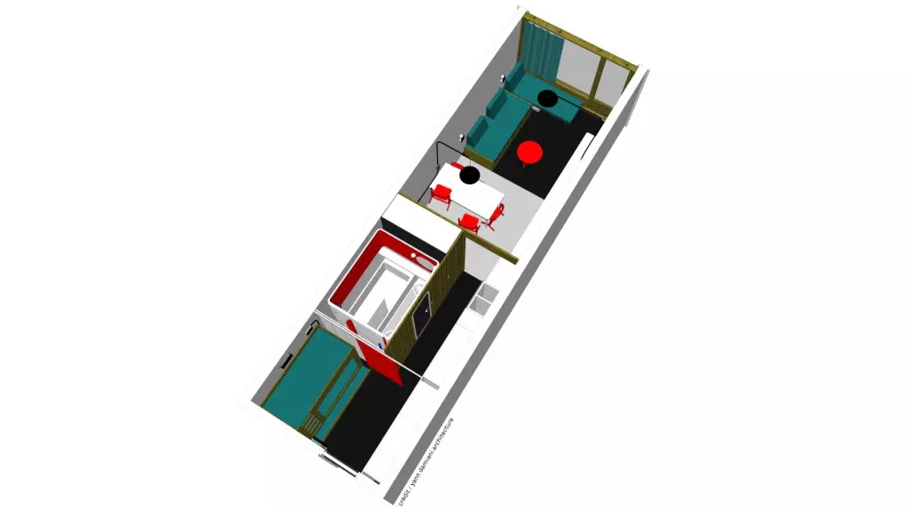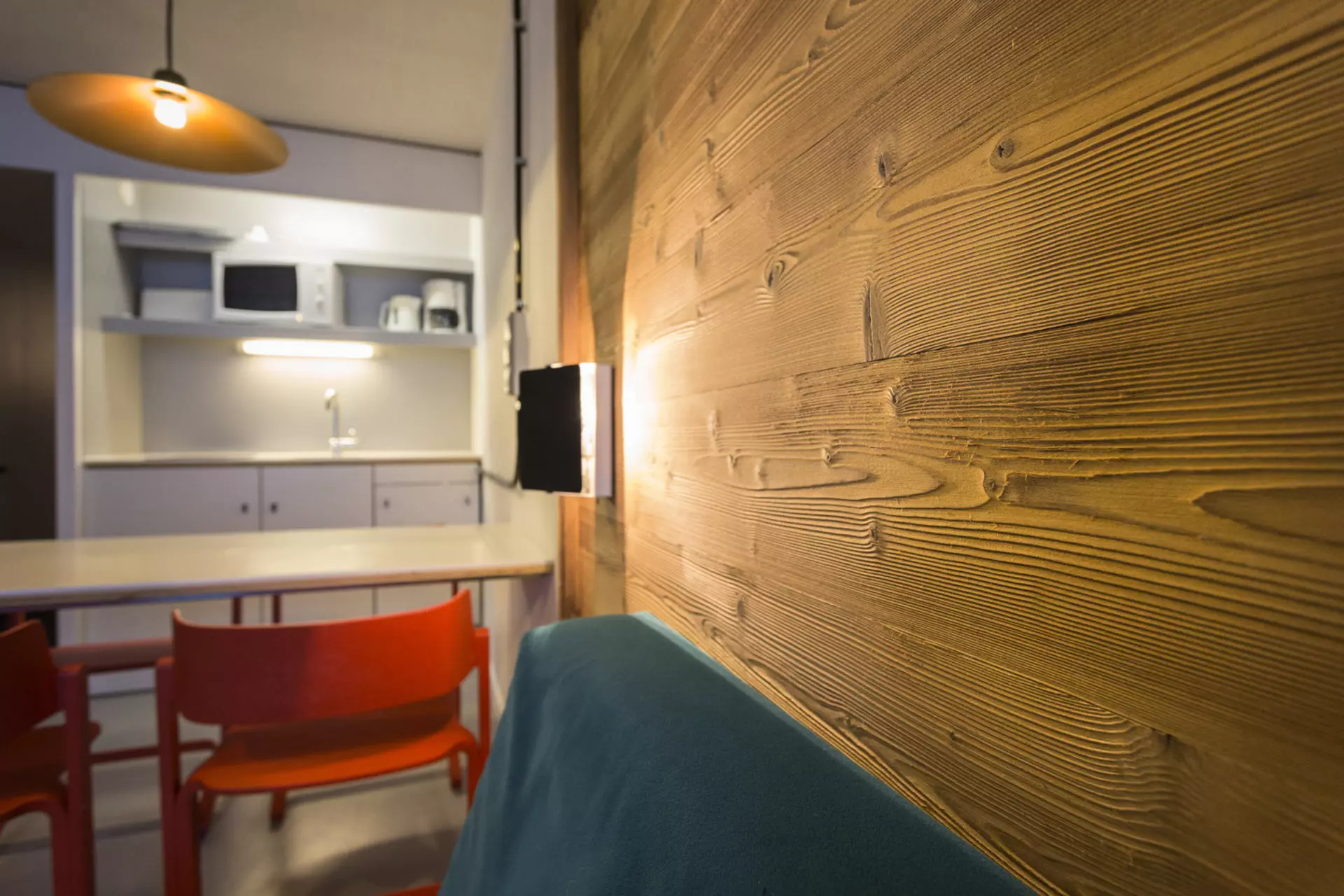 Studio composé d'une entrée avec 2 lits superposés (le couchage en hauteur ne convient pas aux enfants de -6 ans) + 1 lit gigogne