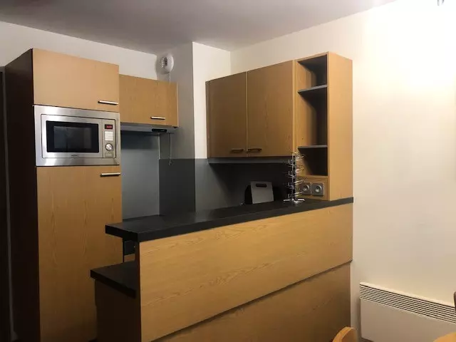 Appartement 2 pièces équipé pour 4 personnes, d'une superficie de 37 m², situé dans la résidence Les Souverains, aux Arcs 1800, balcon exposé Est, skis aux pieds.