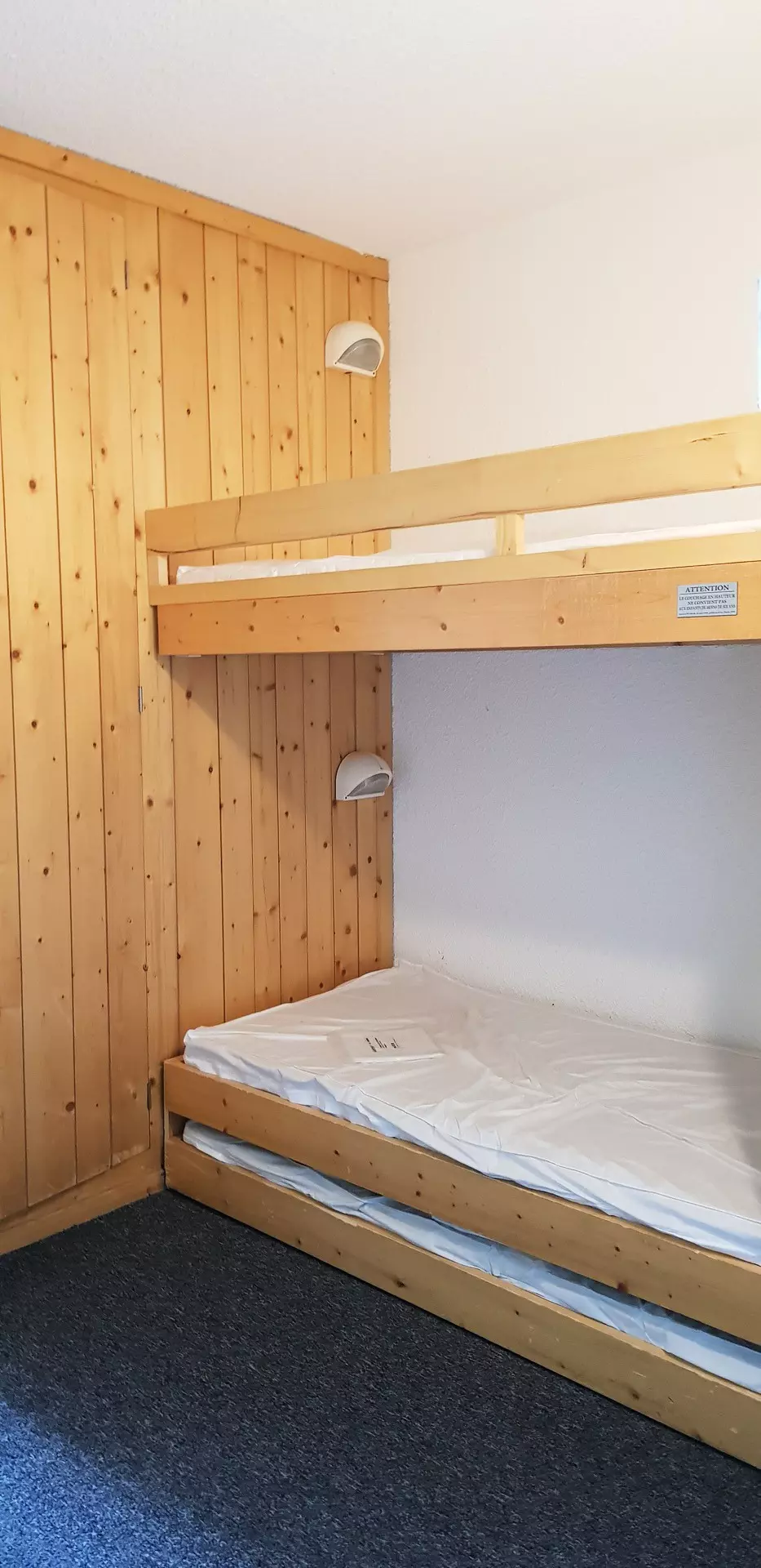 Un coin montagne avec un ensemble de lits superposés et un lit tiroir.