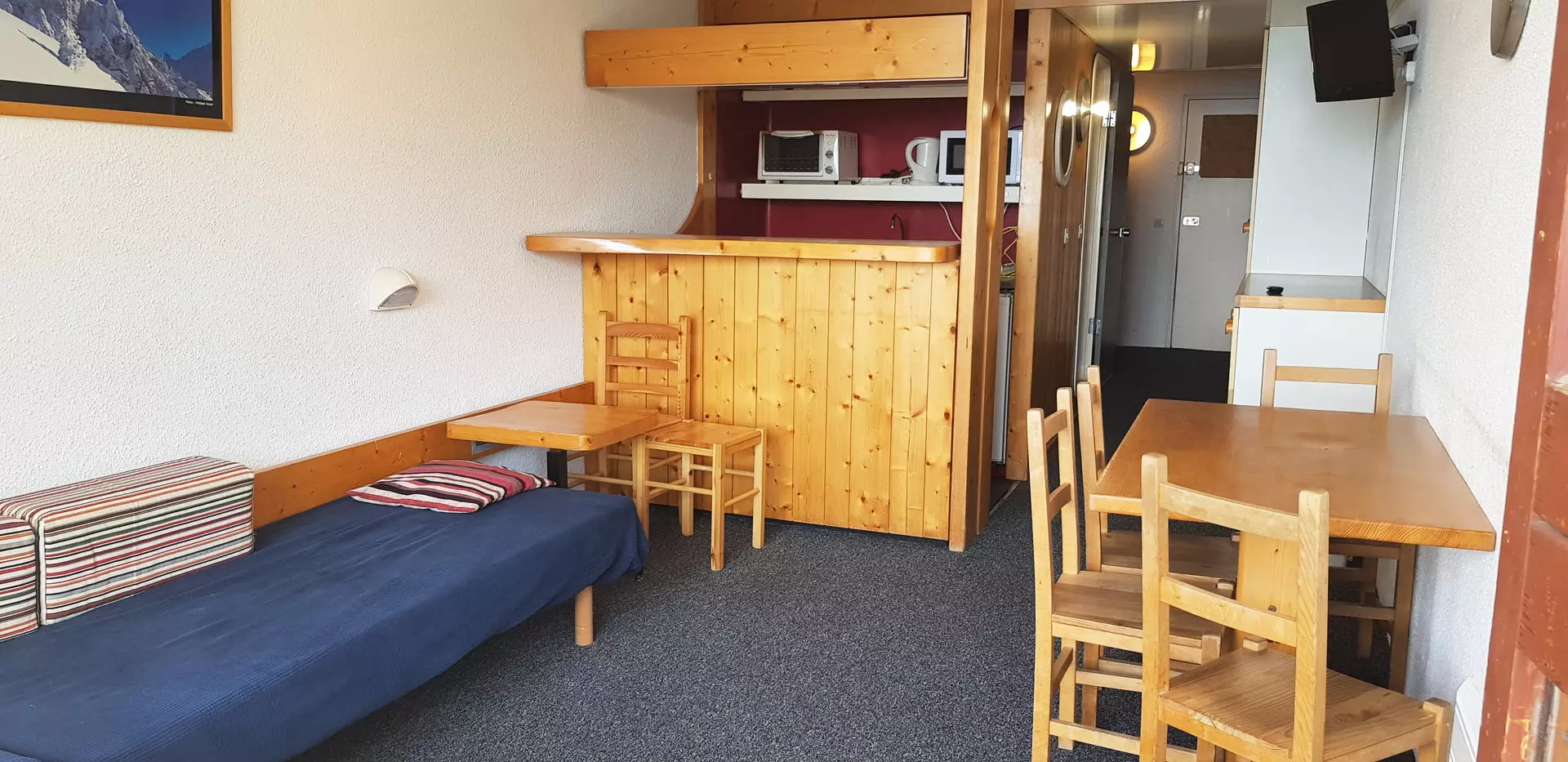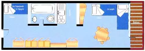 Ce studio de 30m² pouvant accueillir jusqu'à 5 personnes est situé au 3ème étage de la résidence Pierra Menta, résidence avec ascenseur.