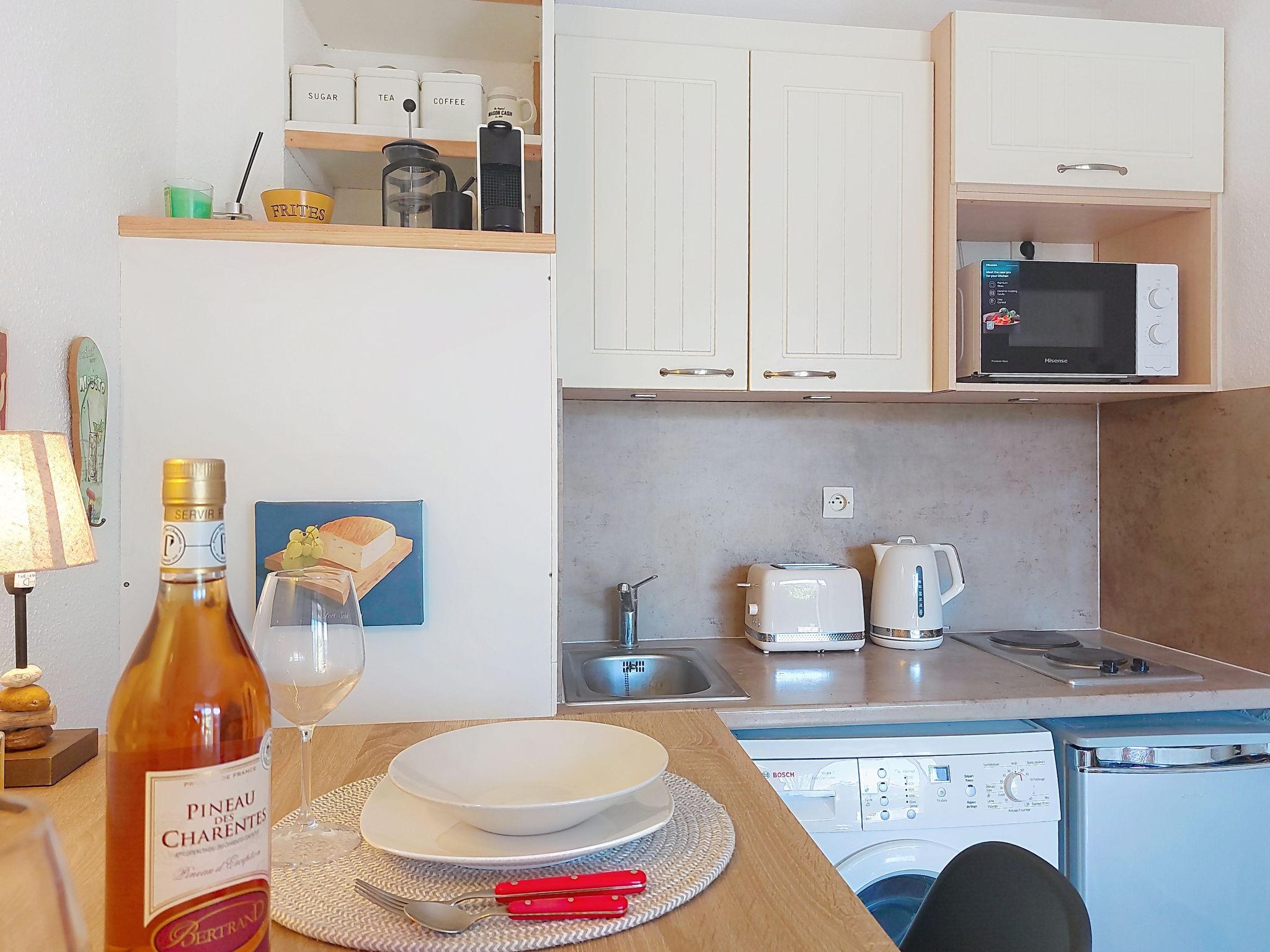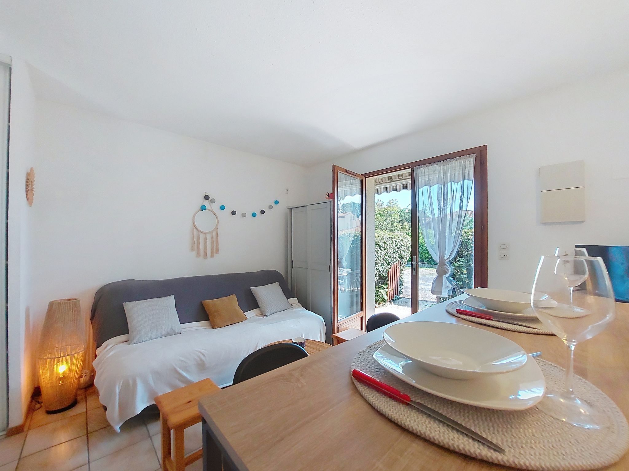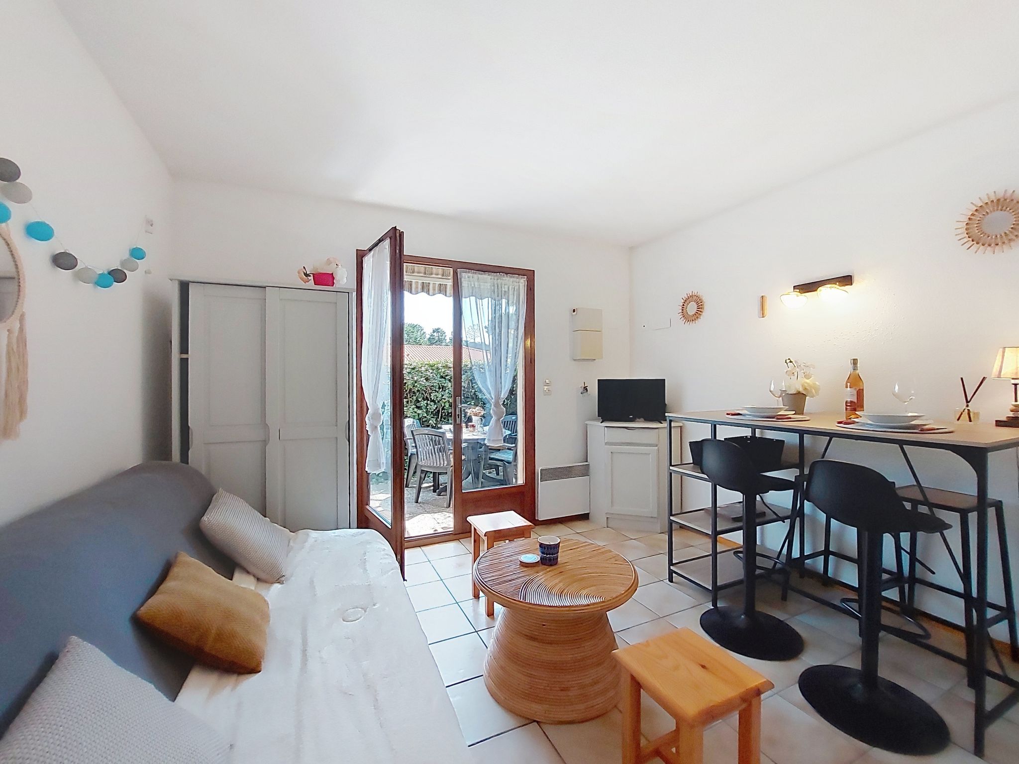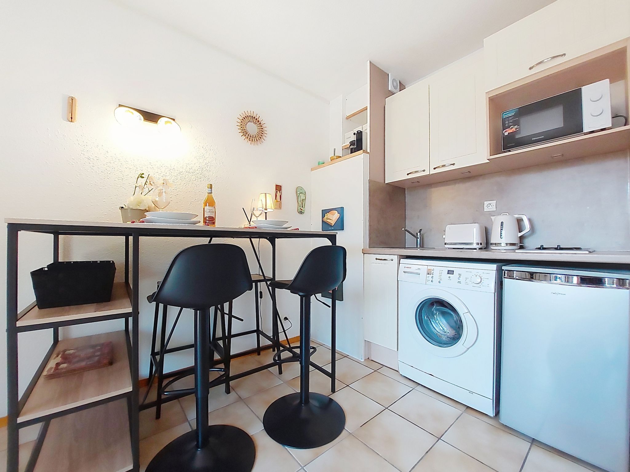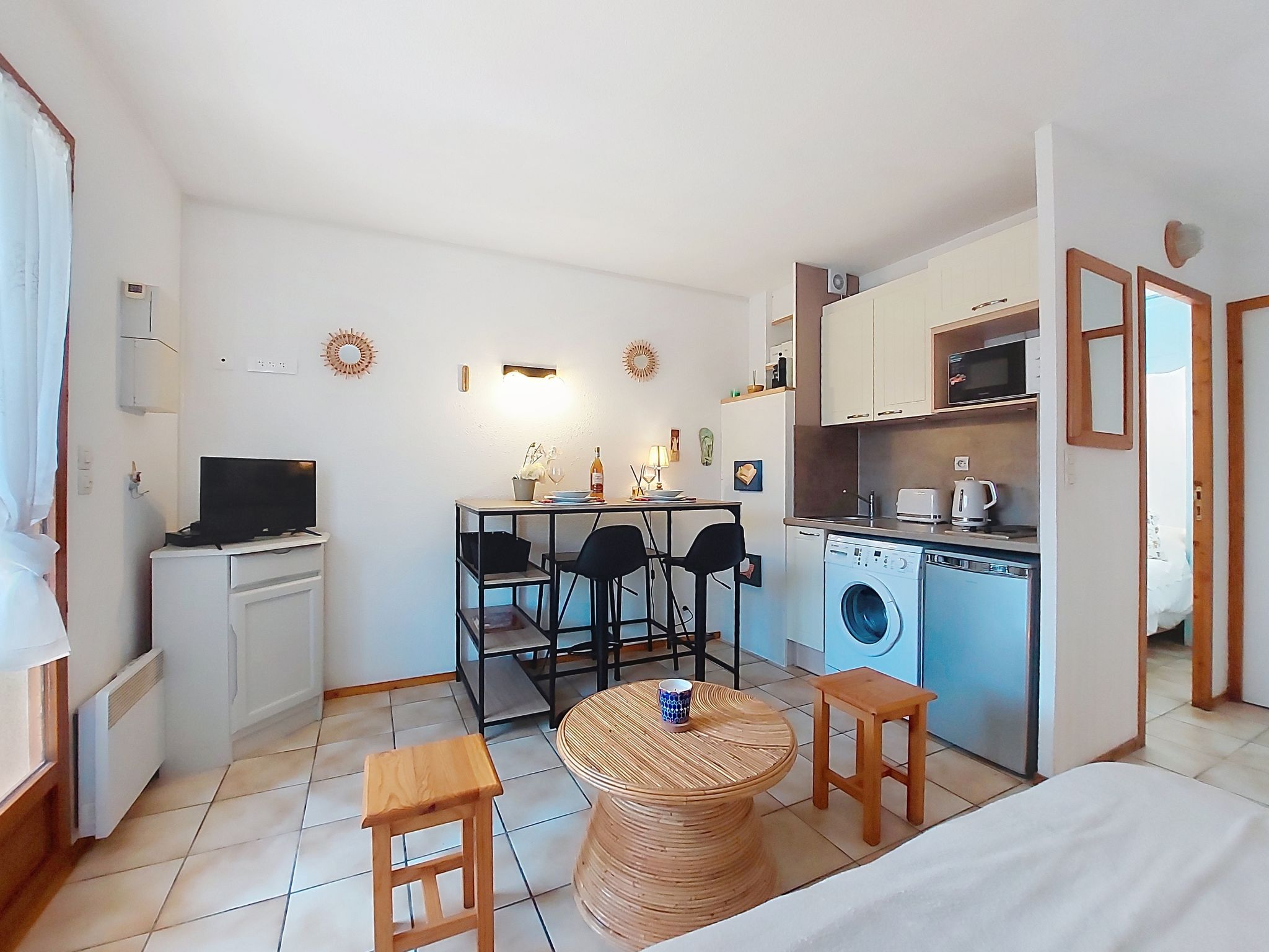 Appartement de 2 pièces 22 m2, au rez-de-chaussée, situation sud. Séjour avec TV (écran plat). Sortie sur la terrasse. 1 chambre avec 1 grand-lit (1 x 120 cm, longueur 190 cm). Coin cuisine (2 plaques de cuisson, mini-four, grille-pain, bouilloire électrique, micro-ondes, cafetière électrique). Douche/WC. Chauffage électrique. Terrasse 6 m2, situation sud. Meubles de terrasse. A disposition: lave-linge. Internet (Connexion WIFI, en sus). Place de parking No 62 (2 Voitures). Veuillez noter: logement côté parking. Détecteur de fumée. Annonce d'un particulier (art 155, IV du CGI).