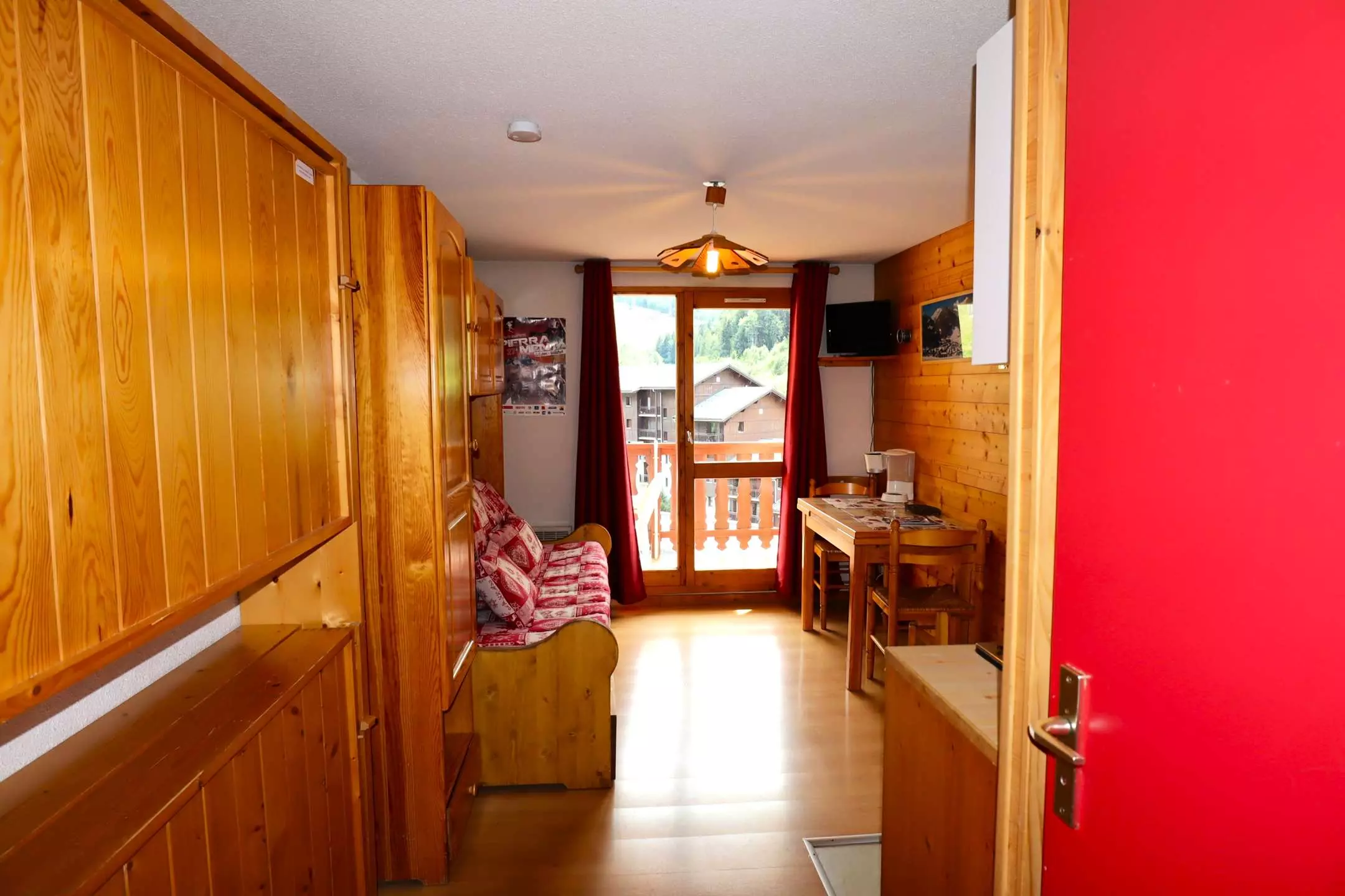 Appartement très COQUET de 24m² au 1er étage avec ascenseur. - Situation idéale : à pied au ski et au village - résidence de 70 appartements au Val Blanc II avec piscine collective l'été*. Il se compose d'une entrée avec 2 lits superposés 90 rabattables (type wagon) - Salle d'eau avec douche - WC indépendants - Séjour canapé non convertible. TV - kitchenette équipée (lave-vaisselle) - une chambrette avec 1 lit 130 x 190 - Grand balcon sud avec salon de jardin - vue panoramique.