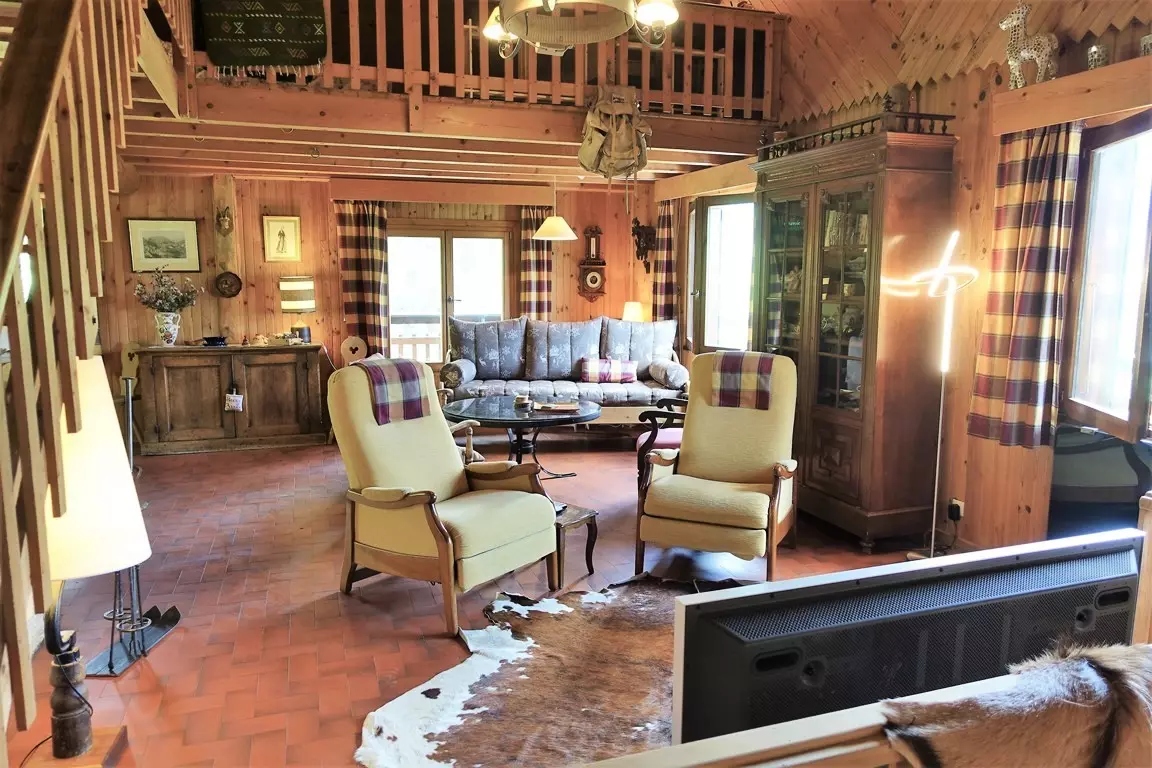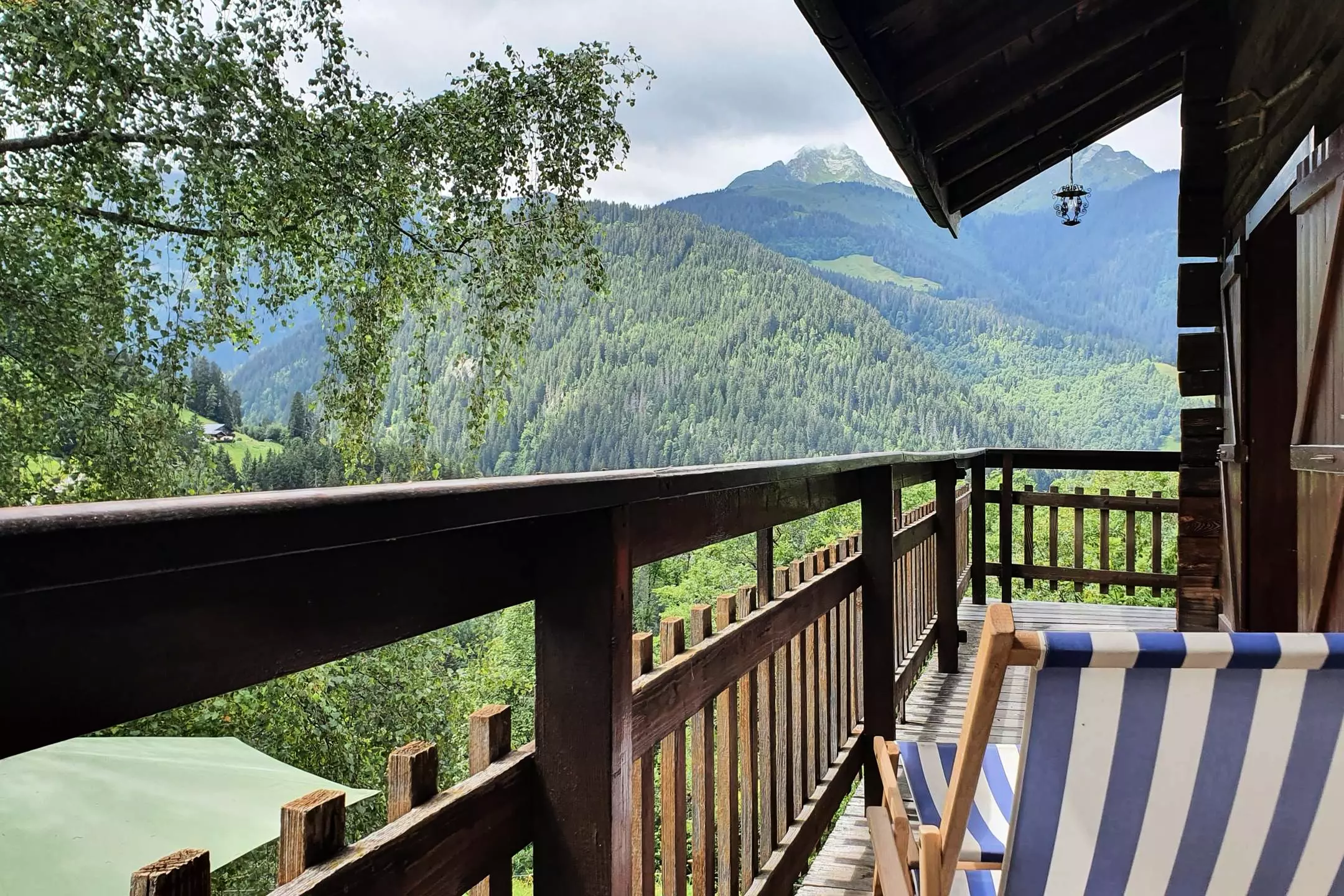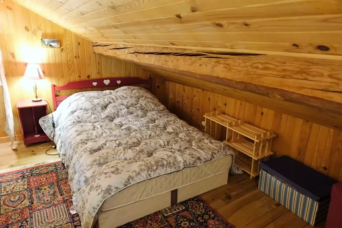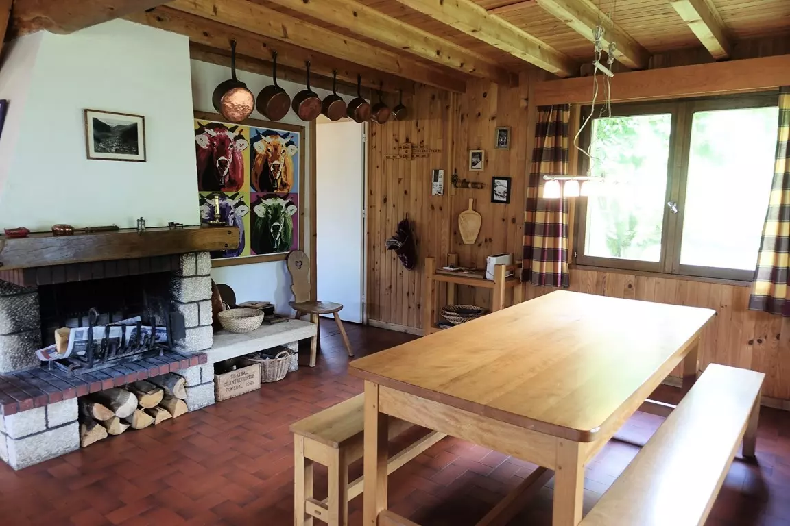 Ce chalet bénéficiant d'une vue en surplomb et à quelques minutes en voiture ou à 30 minutes à pied du village par les chemins, se compose d'un spacieux et chaleureux séjour avec cheminée pour les soirées au coin du feu (bois inclus) - balcon plein sud - cuisine indépendante bien équipée - de 3 chambres fermées + 1 alcôve + 1 mezzanine (Au sous-sol : Il y a 2 lits 140 ; de plain pied avec salon 2 lits 90 dans alcôve. A l’étage sur la mezzanine : 1 lit en 120 et 1 chambre avec 1 lit 160)