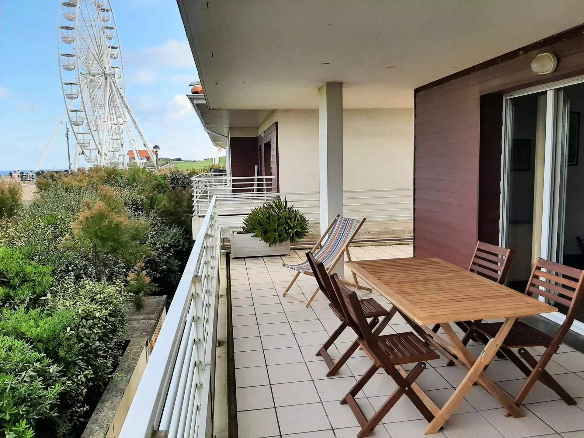 Dans une résidence avec ascenseur, bel appartement au 1er étage avec vue mer, spacieux et clair d'une surface de 67m2 pour 4/5 personnes avec terrasse et salon de jardin et chiliennes.