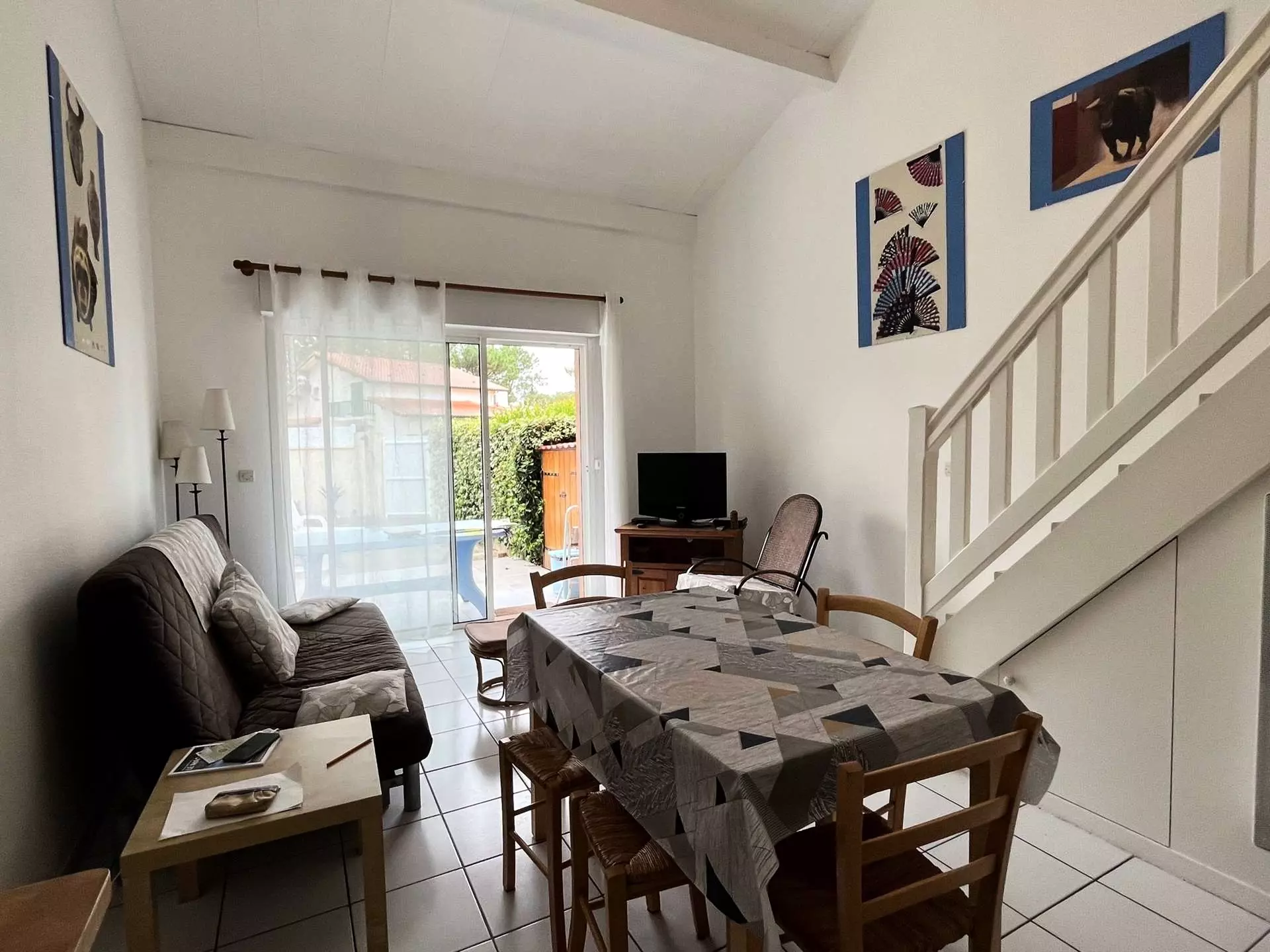 Maison mitoyenne de 61m2 pour 7 personnes avec INTERNET, située à 500m de la plage, à 800m des commerces, terrasse exposée sud avec mobilier de jardin, transats et barbecue. 1 emplacement de parking privatif.