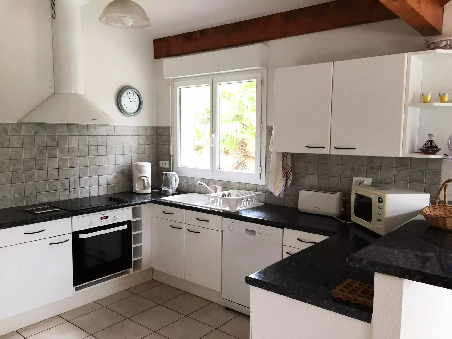 CUISINE AMERICAINE équipée avec four, plaque de cuisson vitrocéramique, lave-vaisselle, micro-onde, cafetière Nespresso, cafetière filtre, grille-pain