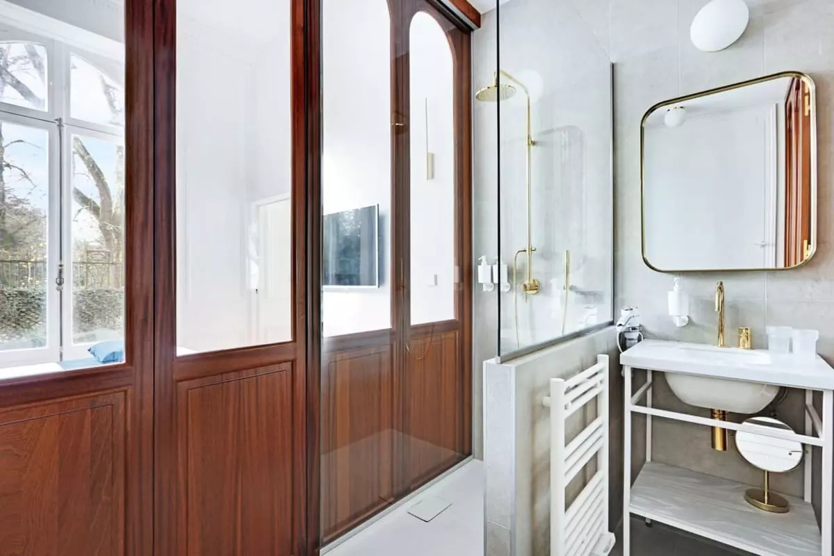 - Salle de bain : Douche à l'italienne moderne et grande baignoire pour des moments de détente. Les toilettes sont séparées.