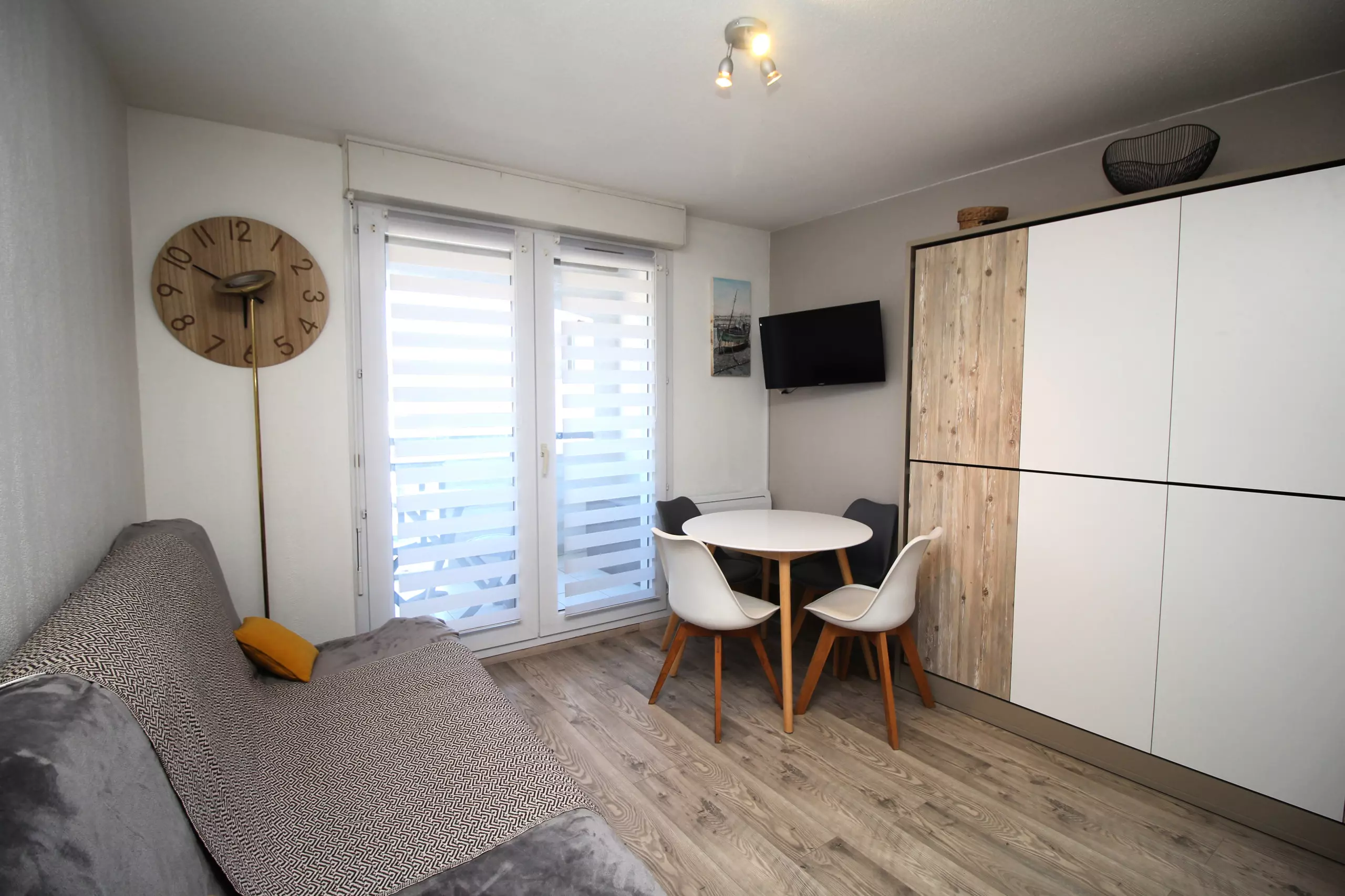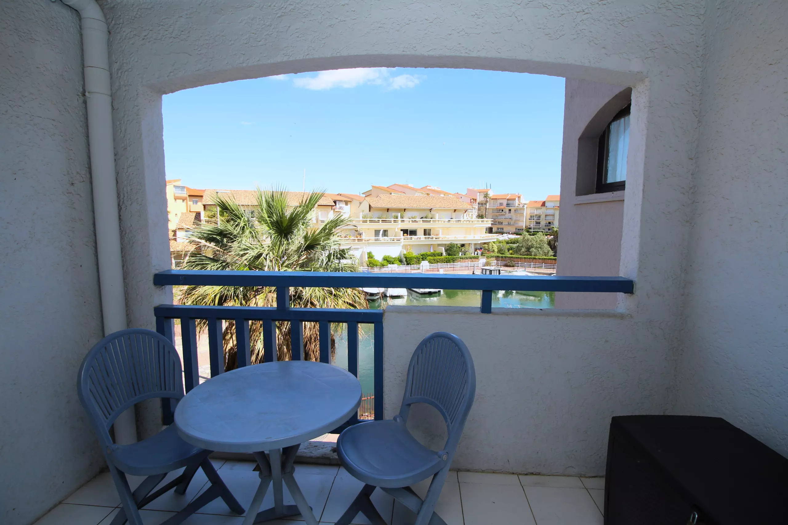 Ce charmant et confortable studio à quelques pas de la plage se compose d'une entrée avec placards, d'une salle d'eau avec WC et d'une pièce de vie avec coin cuisine et agréable balcon pour profiter des repas avec vue sur les bateaux et la Marina.
