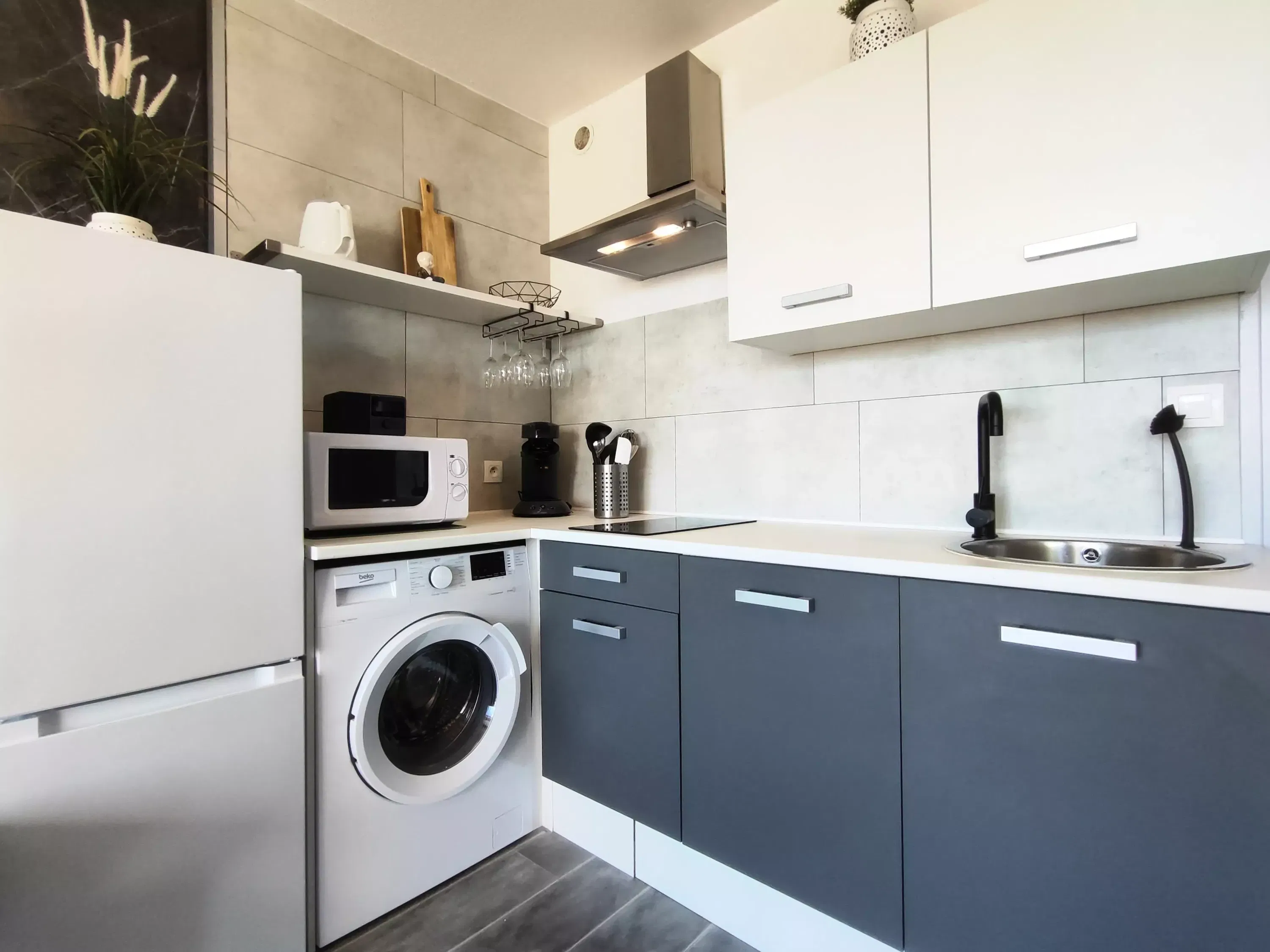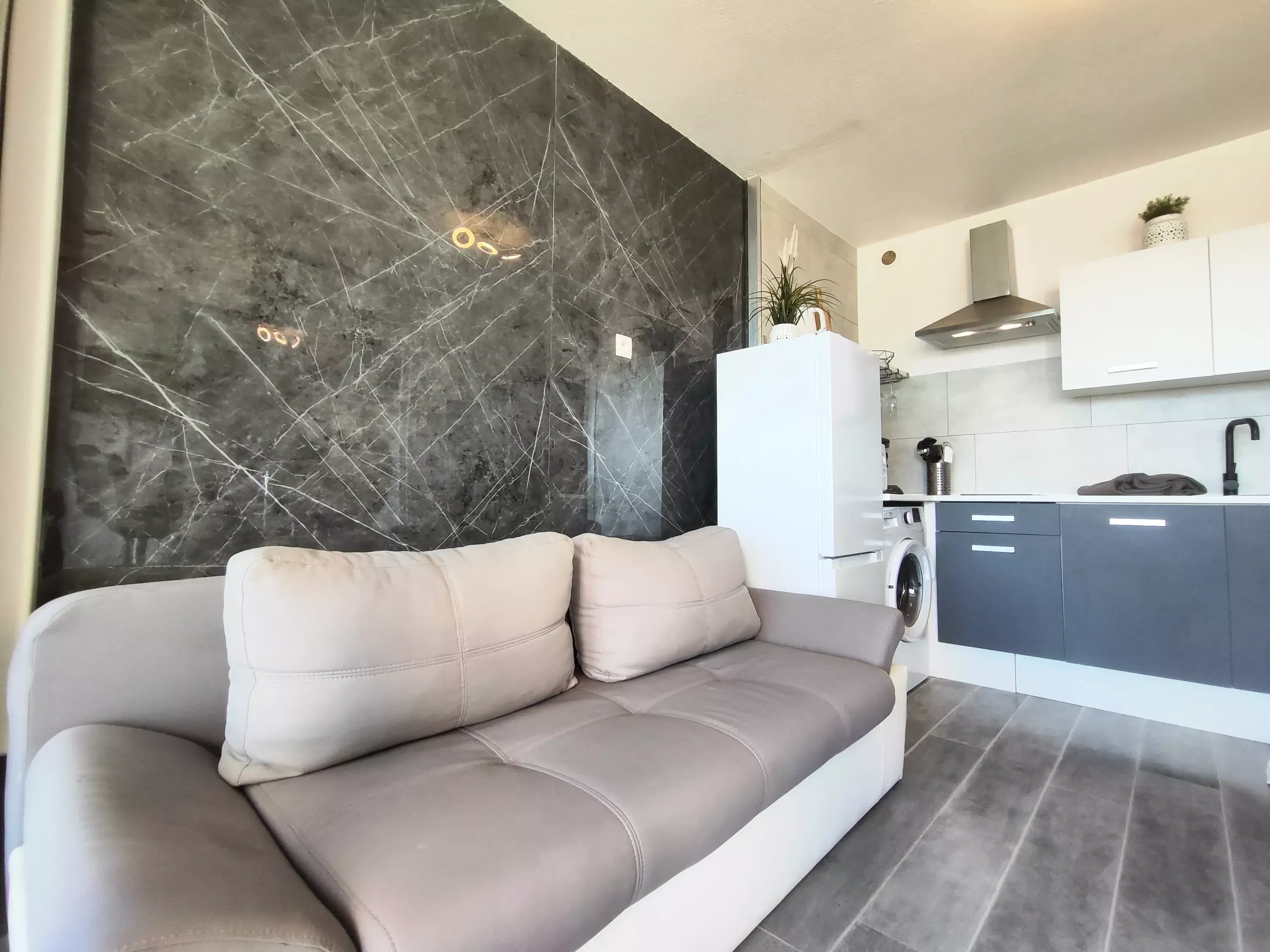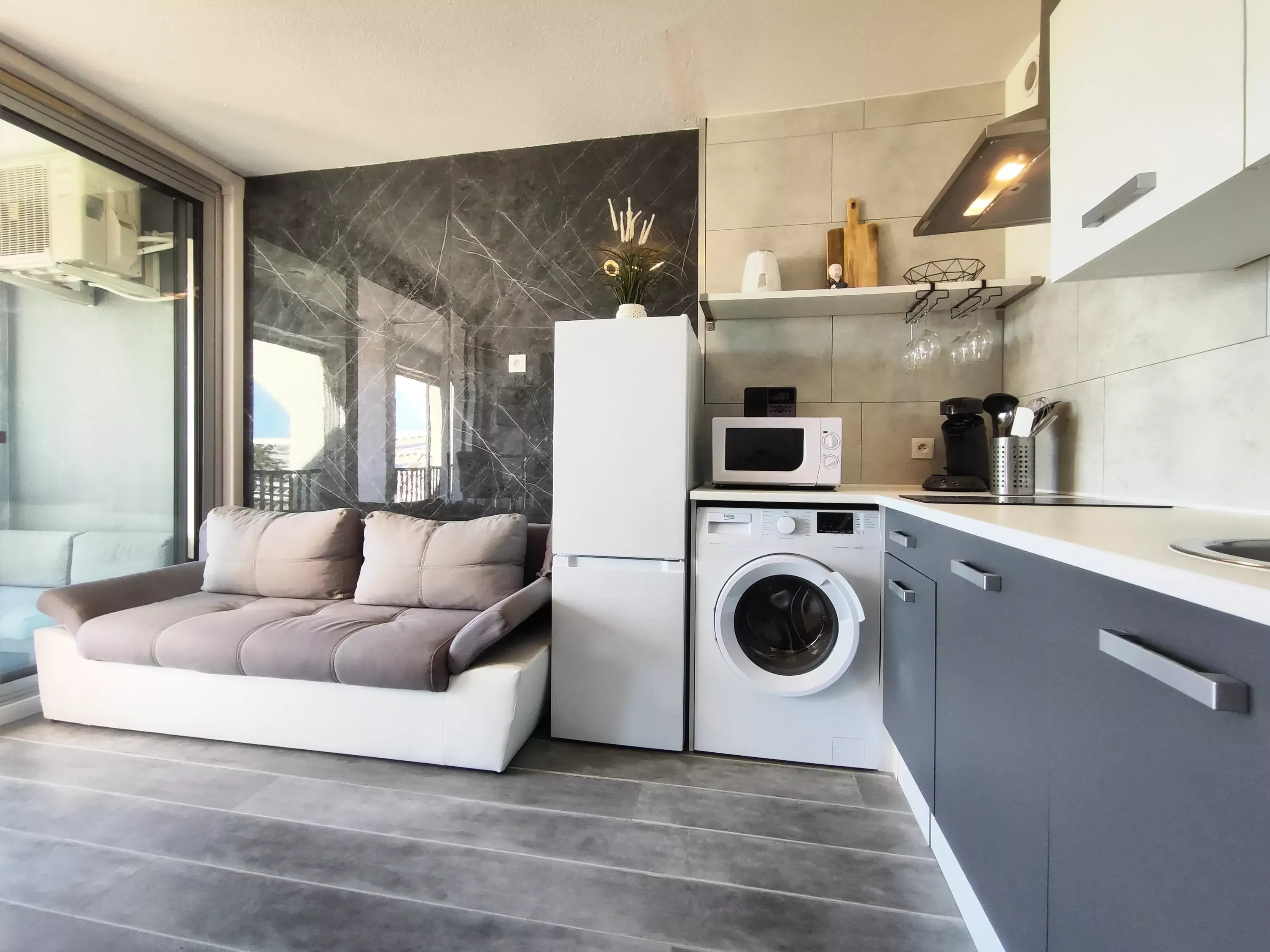 Joli appartement climatisé pour 2/4 personnes, situé à Héliopolis entrée FGH, au 3ème étage sans ascenseur. Séjour avec coin cuisine avec micro-ondes, cafetière, Senséo, bouilloire, aspirateur, lave linge.. Coin chambre avec un lit dans en 160 cm. Un canapé dans le séjour. Salle d'eau WC séparés. 2 Balcons communicants (10 m² ). Parking n° 30.