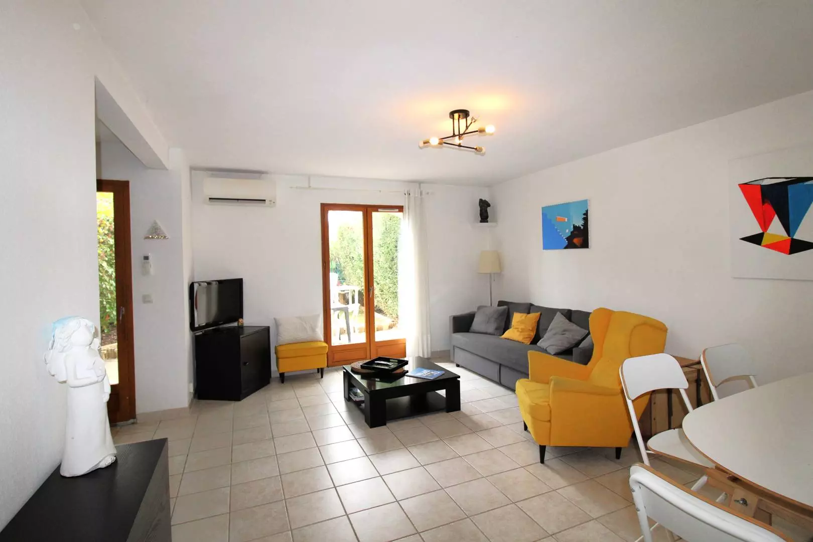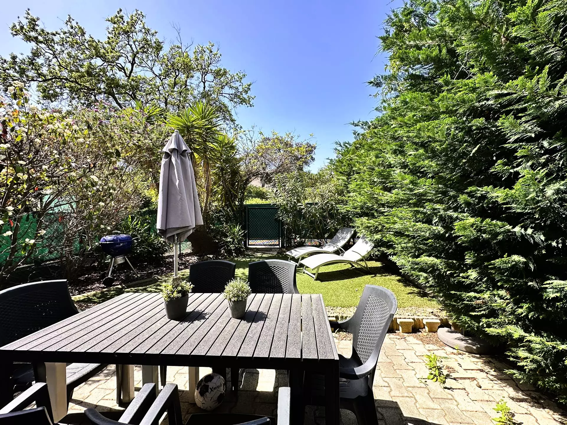 La maisonnette T5/Triplex, d’une surface d’environ 110 m², dispose d’un jardin privatif et d’un accès à la piscine dans une résidence sécurisée. Au rez-de-jardin, le séjour/salle à manger climatisé avec cuisine ouverte s’ouvre sur la terrasse et le jardin. Des rangements et un WC indépendant complètent cet espace. Au premier étage, trois chambres lumineuses donnent sur la piscine : deux chambres avec lits doubles (140x200) et une chambre avec lit Queen Size (160x200) donnant sur une terrasse. Au deuxième étage, un espace détente avec canapé convertible (140x200) et une salle de douche avec WC.