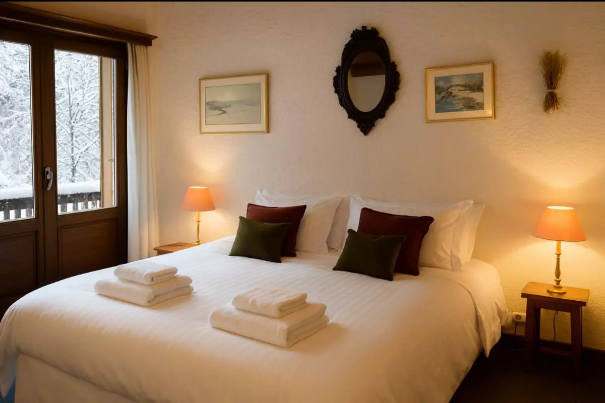 Le chalet est composé de 4 chambres, ou vous trouverez 4 lits doubles. Il y a "une suite parentale" avec 1 salle de bain. Le reste du chalet offre 2 salles de douche mais chaque chambre dispose d'un lavabo. Le coin salon - salle à manger est très agréable et donne sur un large balcon tout en longueur avec vue sur le MONT BLANC. Le chalet possède un grand jardin privatif qui sera très apprécié en été comme en hiver.
