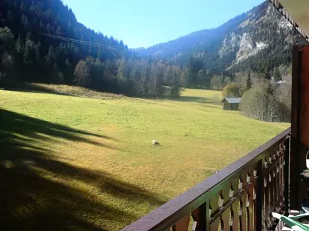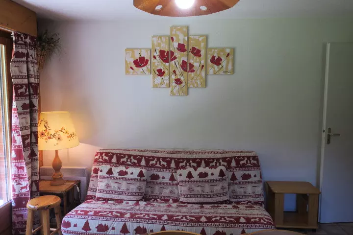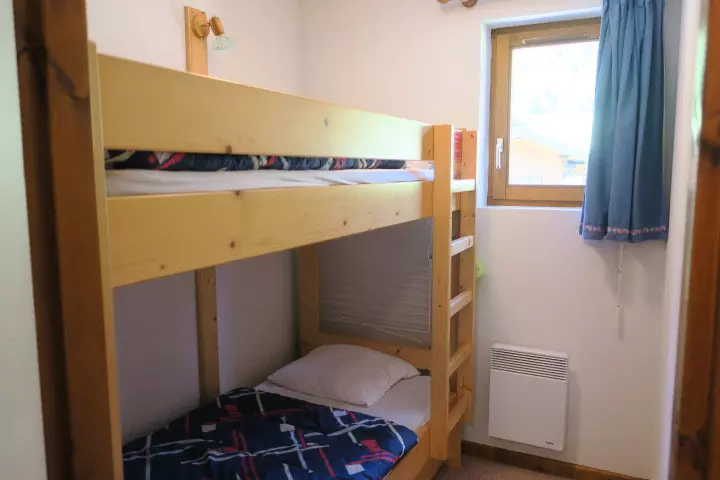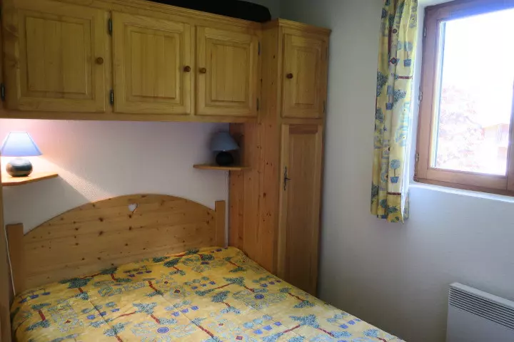 L’appartement est composé d’une entrée avec dégagement, de 2 chambre dont une avec 2 lits superposés, et une autre avec un lit double, ainsi que d’un canapé convertible dans le séjour, une salle de bains, un WC séparé, une cuisine, et un balcon exposé sud-est vue sur les montagnes.