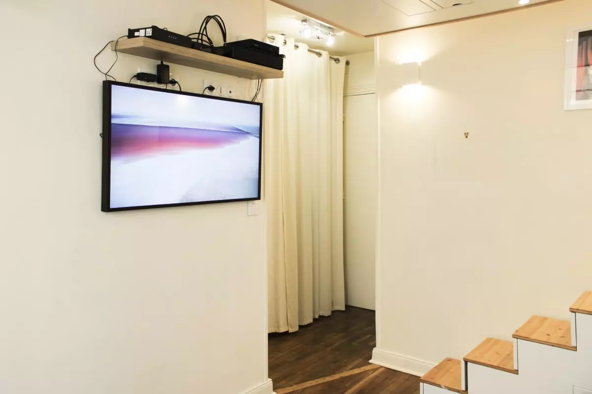 - un coin avec un lit double escamotable ;