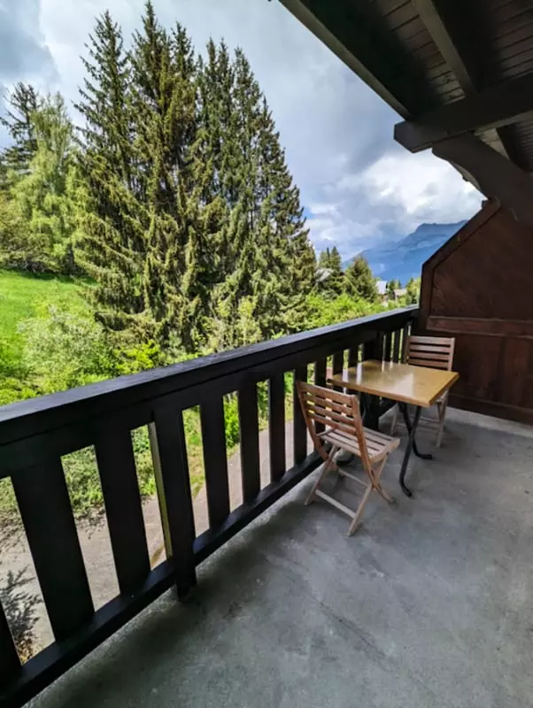 Le grand plus de l'appartement, son balcon avec une magnifique vue sur les montagnes. Idéal pour un repas au soleil les journées de beau temps !