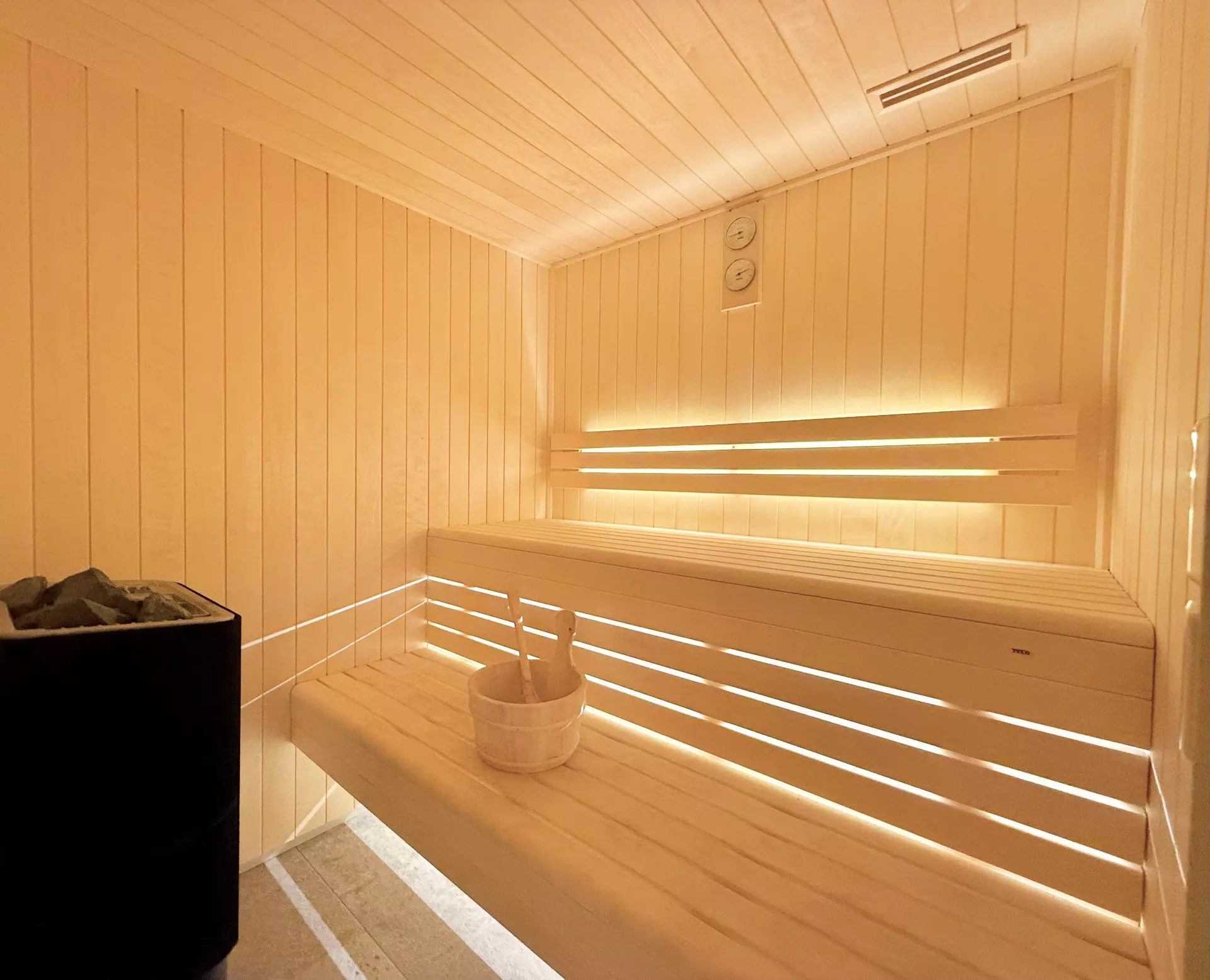 - Espace détente avec sauna, douche et toilettes séparés