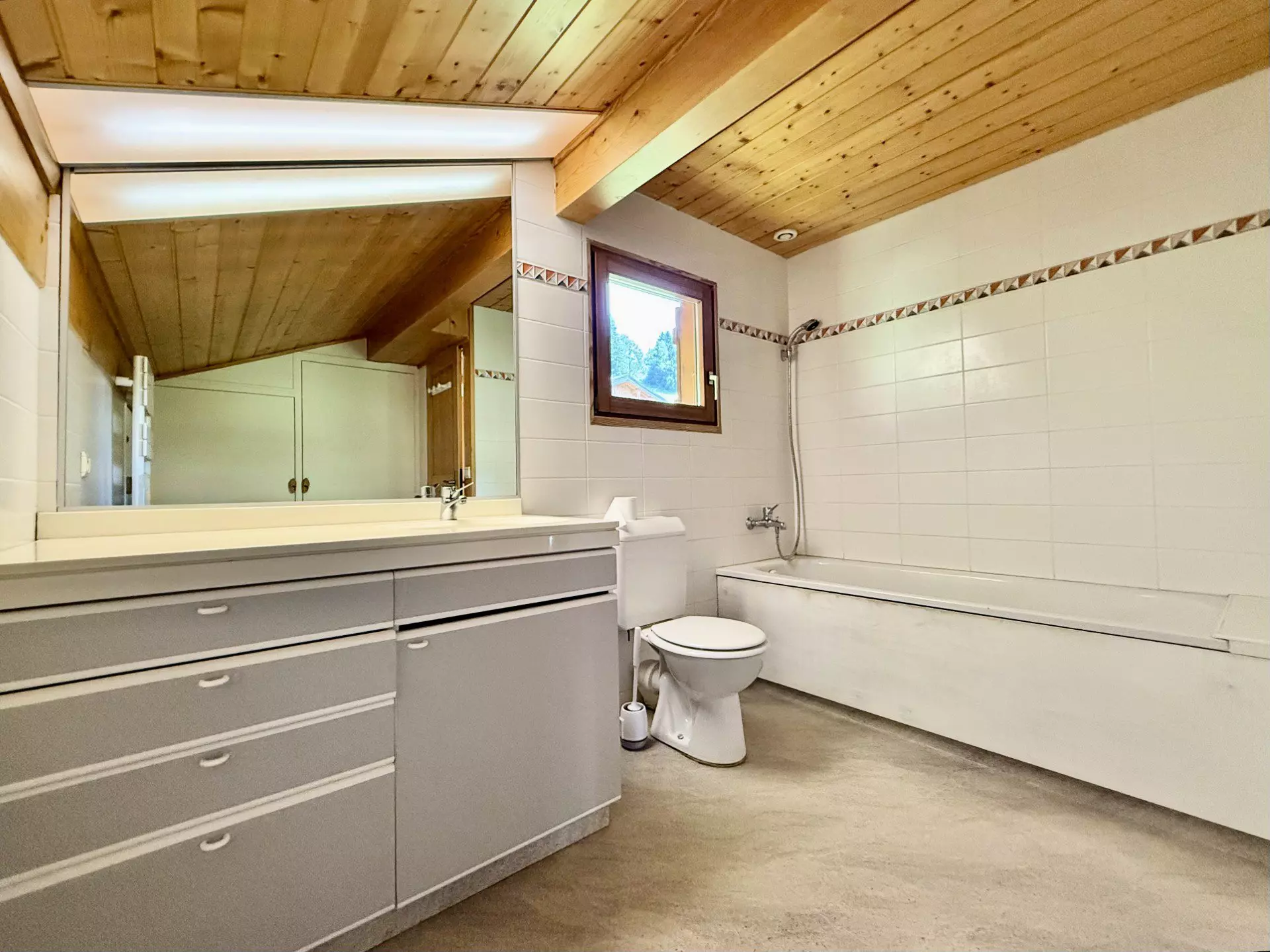 - Une salle de bains avec baignoire et toilettes.