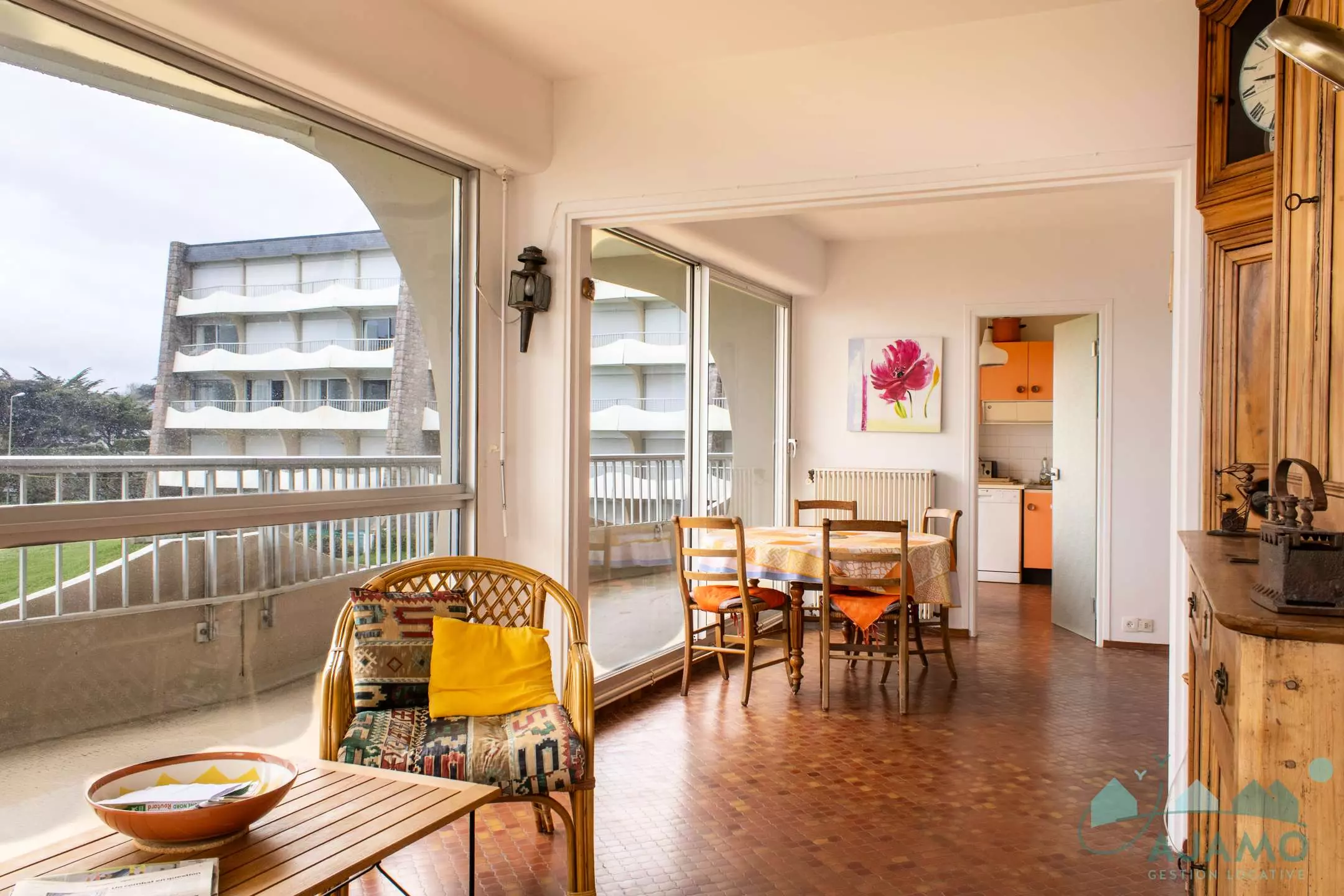 L'agence vous propose cet appartement Appartement avec vue mer de chaque pièce, à quelques mètres de la très belle plage de Caroual (2 km de sable fin).