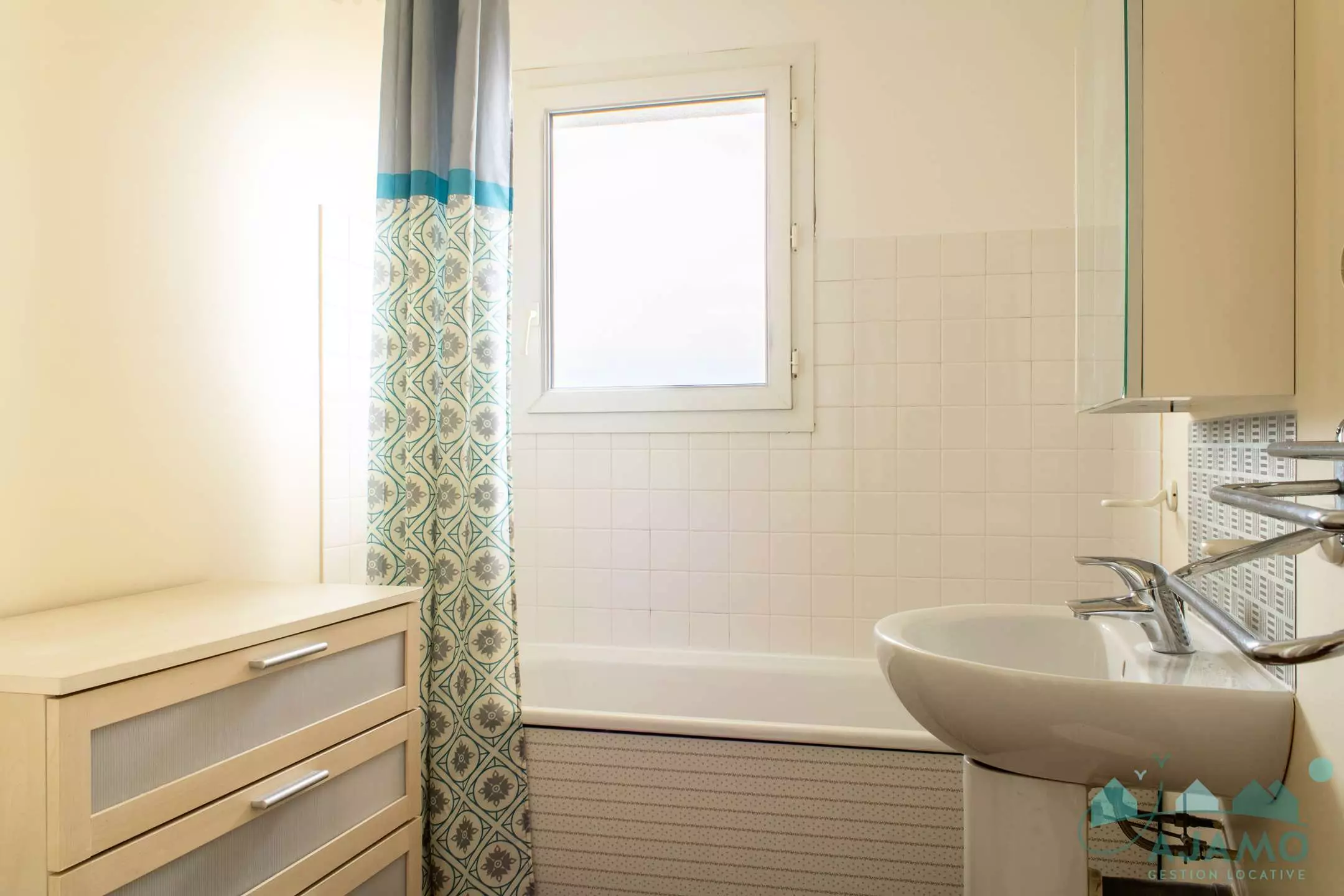 - Une salle d'eau, vue mer, avec double et meuble vasque ;