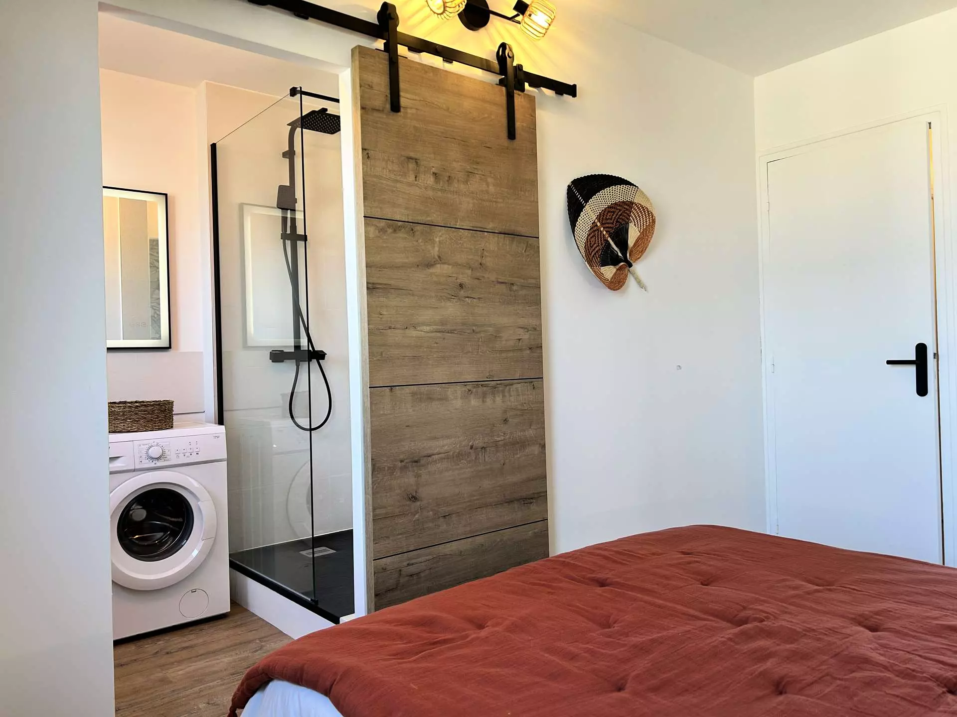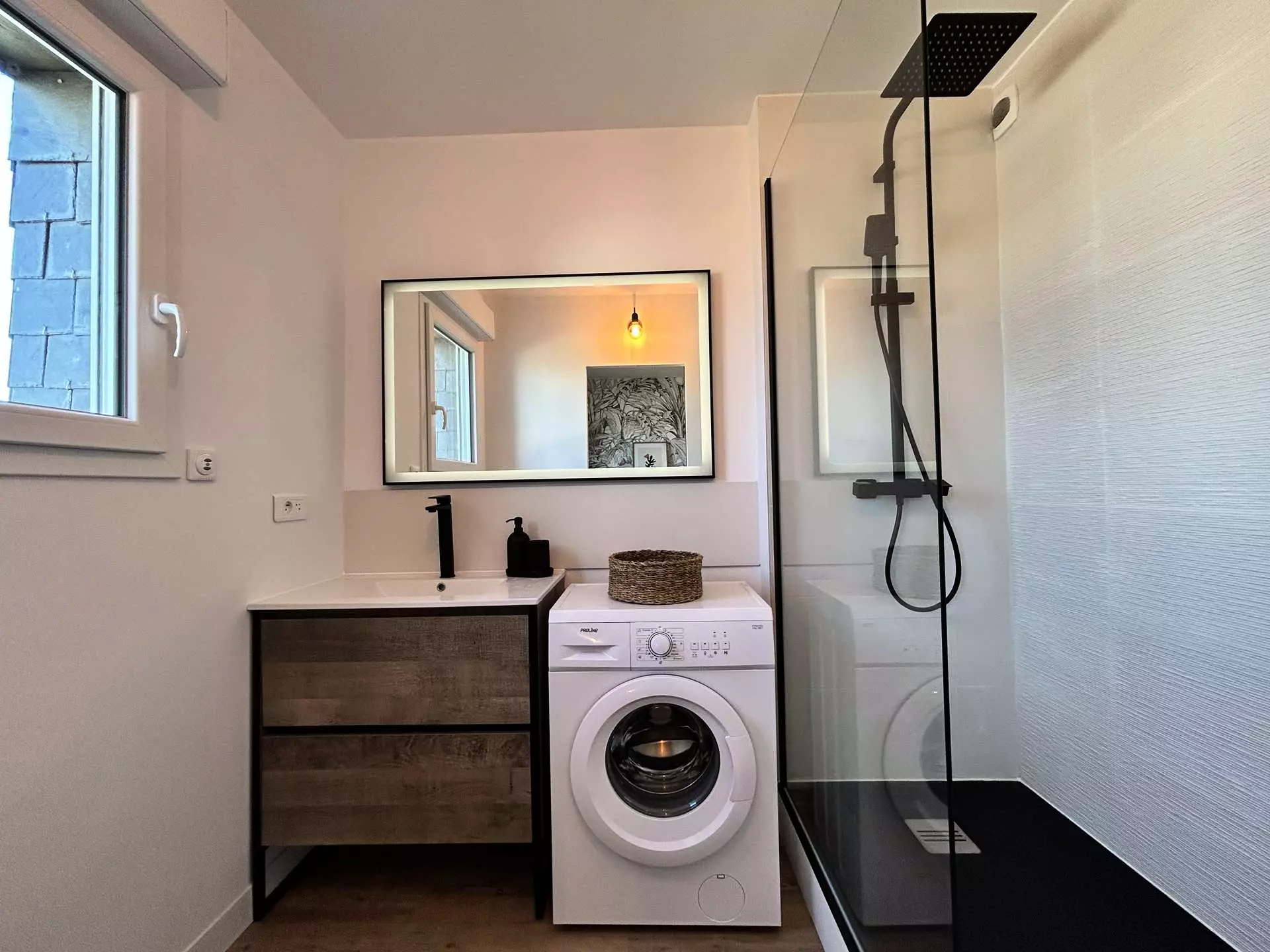 - Une salle d'eau comprenant une douche, une vasque et un lave-linge ;