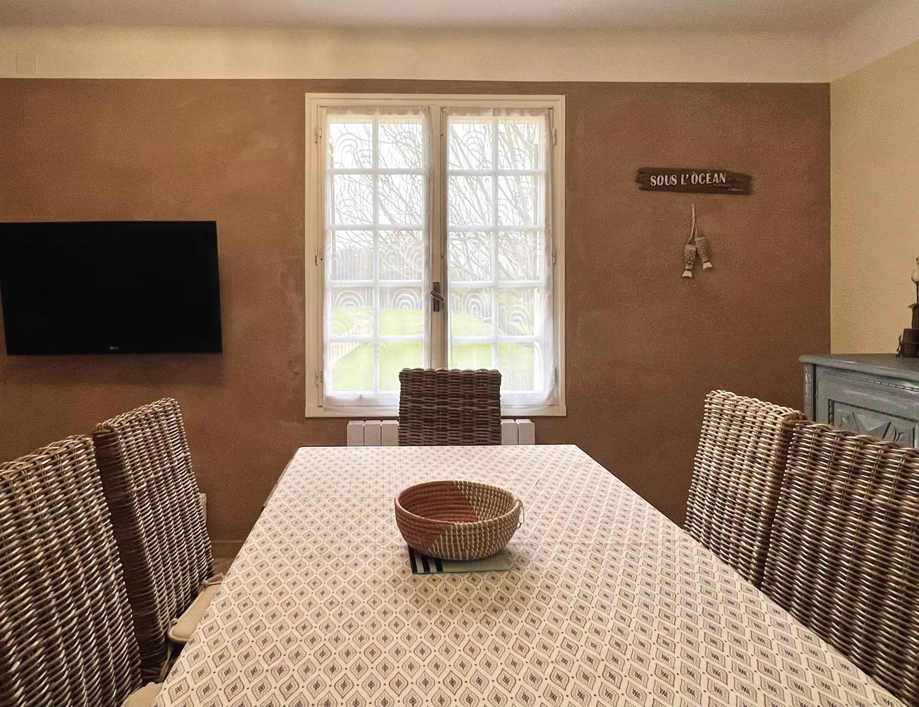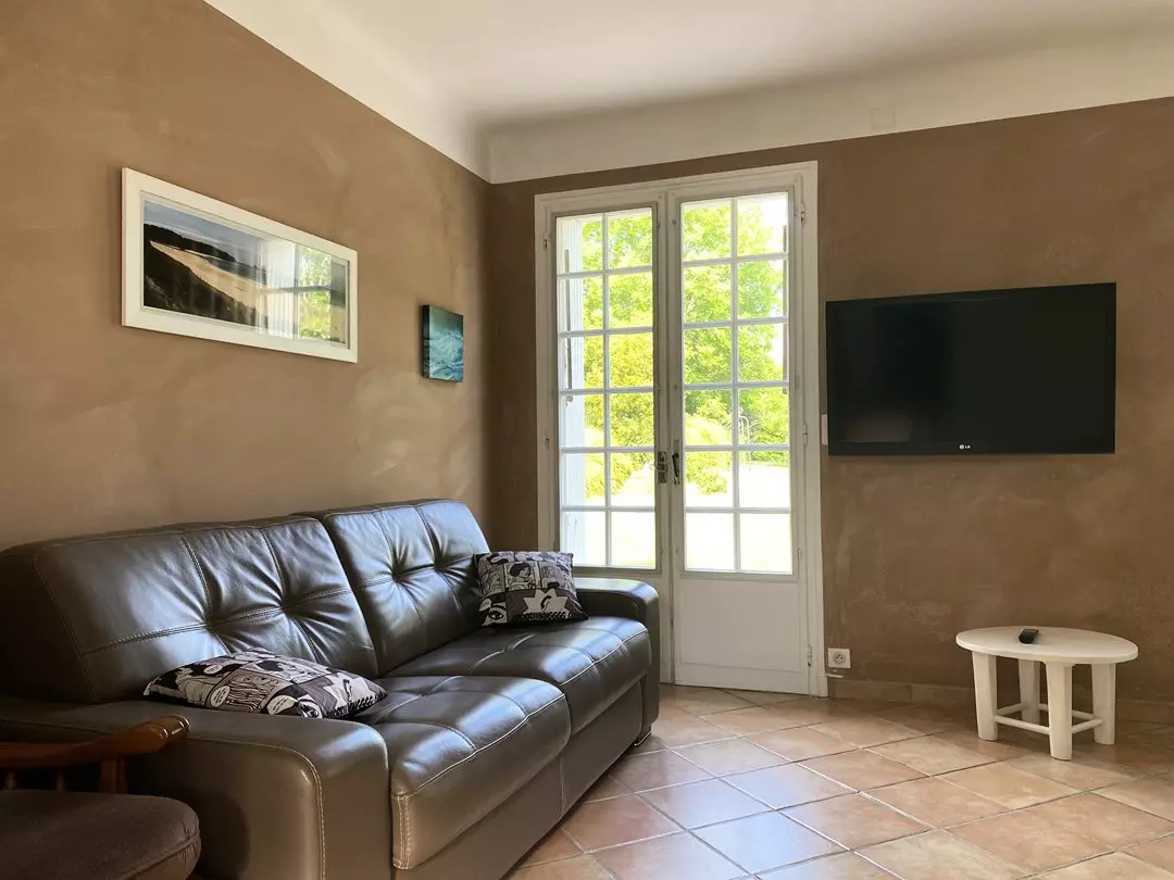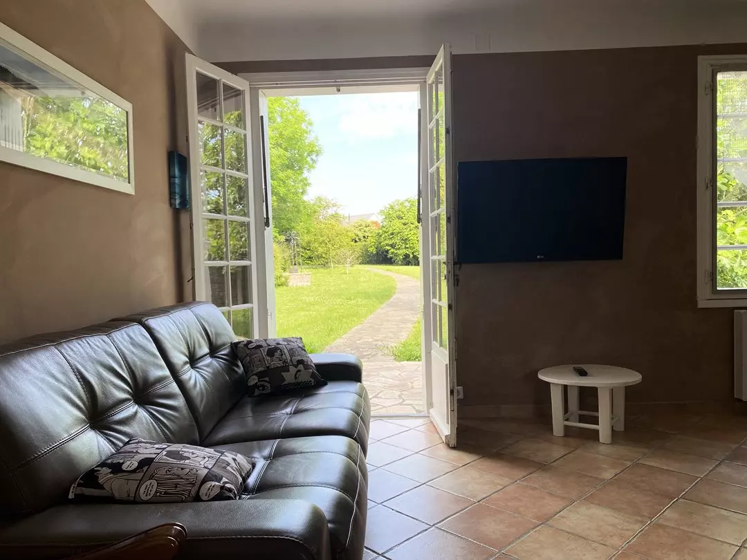- Une salle de séjour, canapé convertible, tv, porte fenêtre sur grande terrasse exposée ouest et sur jardin ;