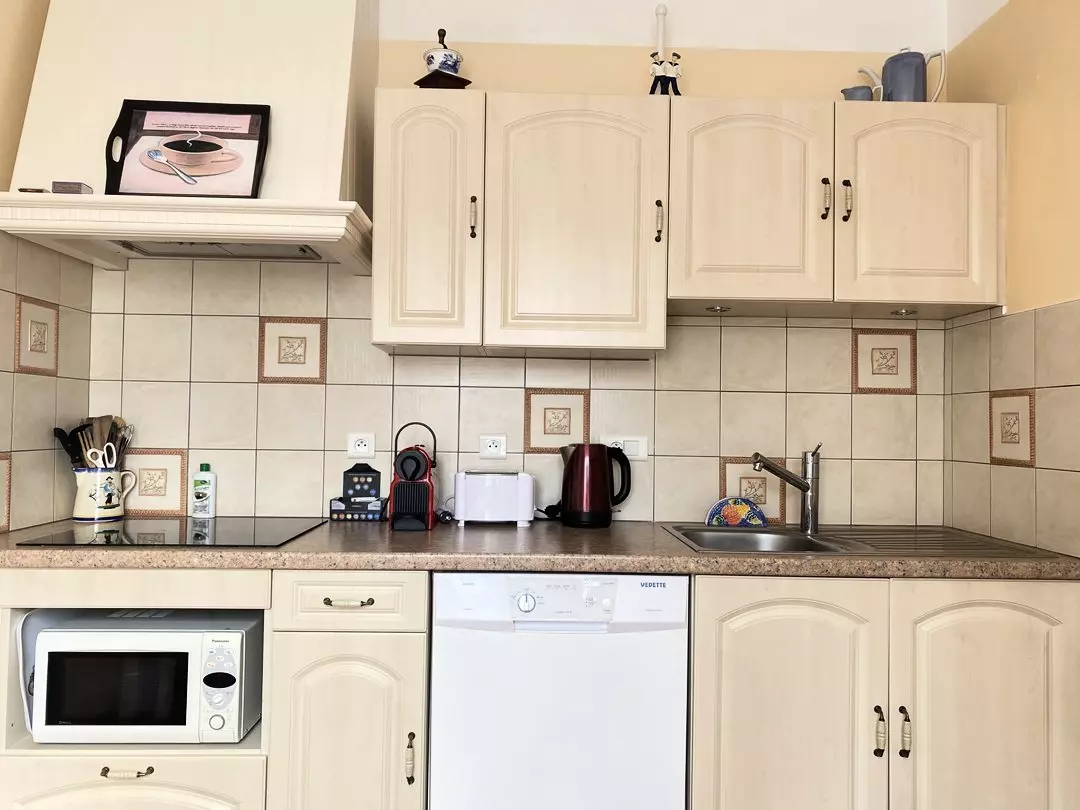- Une cuisine équipée, mini-four, plaque vitro-céramique, lave-vaisselle, réfrigérateur-congélateur ;