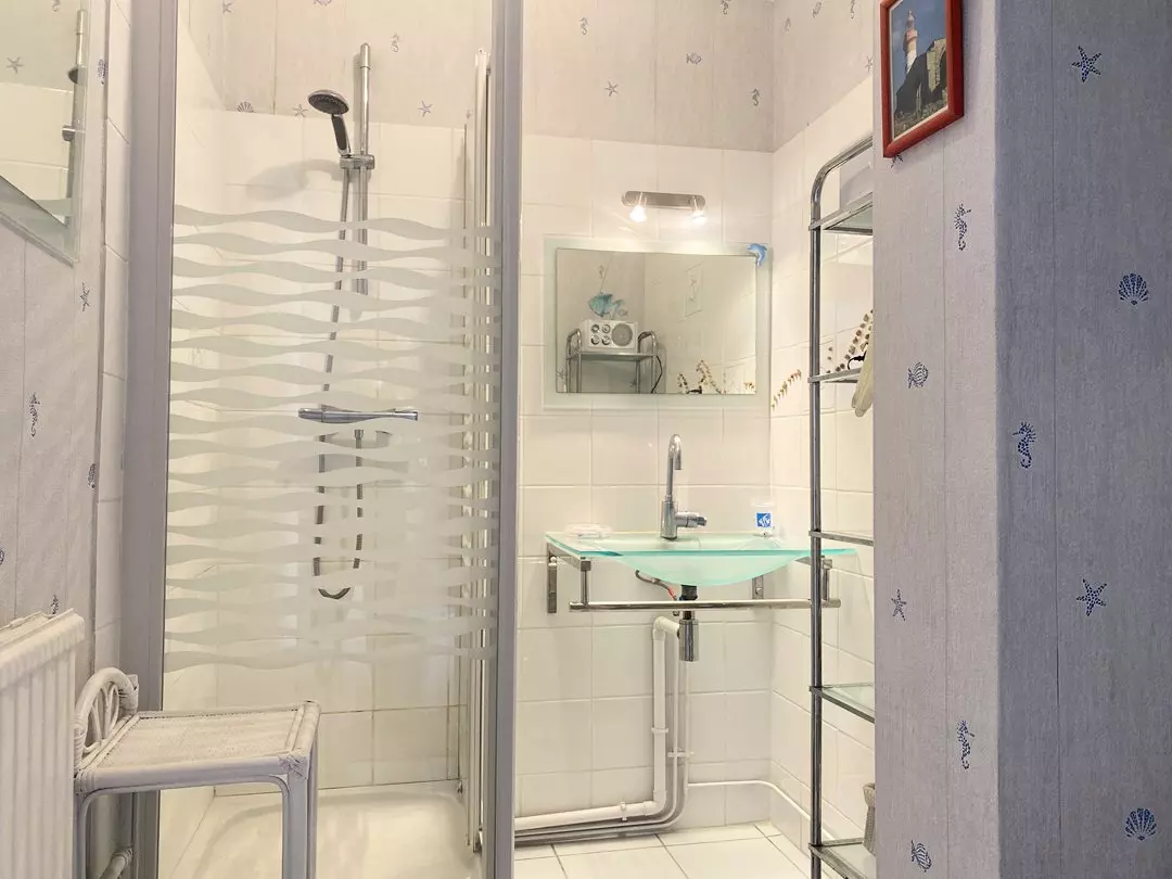 - Salle d'eau, douche, lavabo, W.C. ;