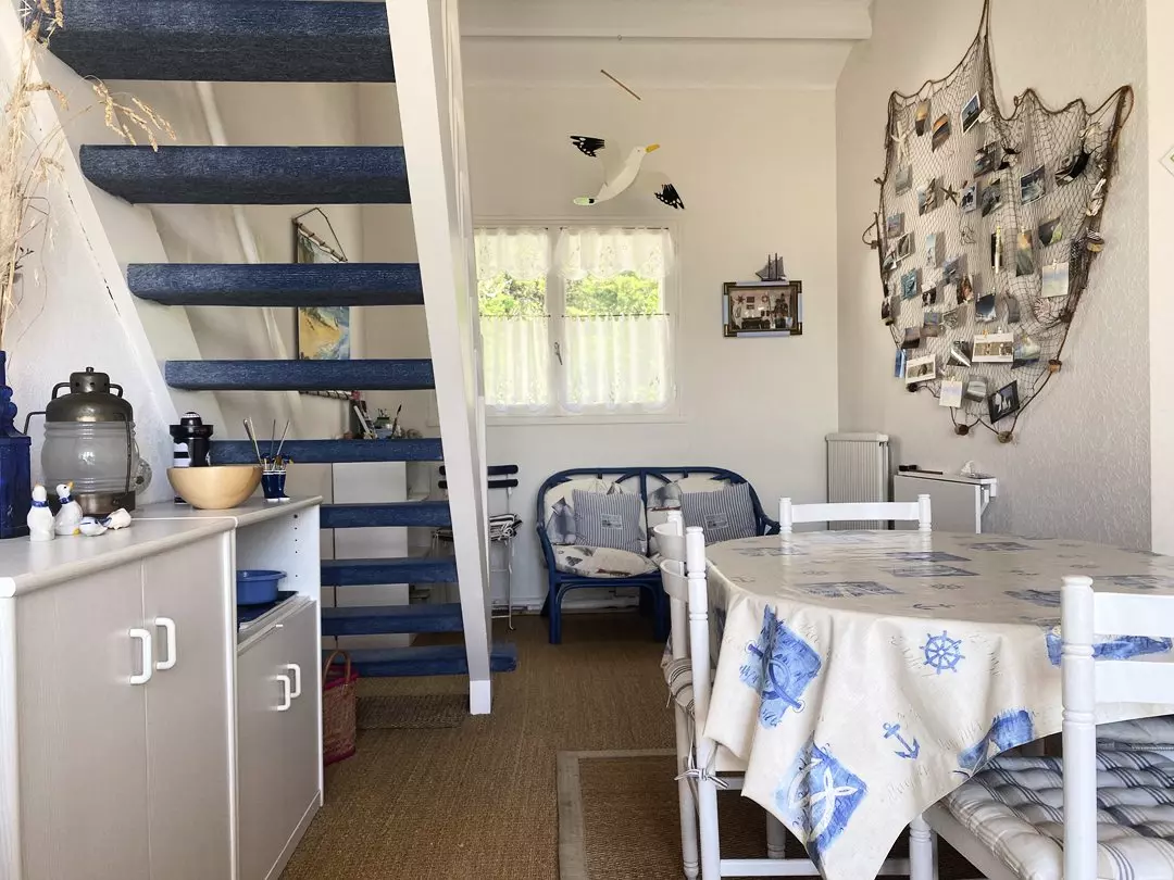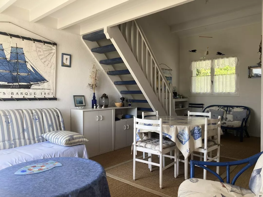 - Chambre-Mezzanine au-dessus du séjour avec 1 lit de 2 personnes + 2 lits d'une personne.