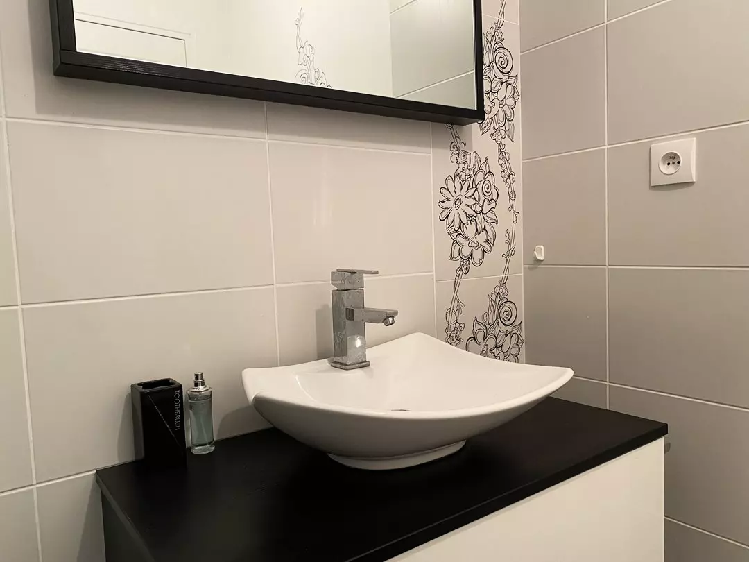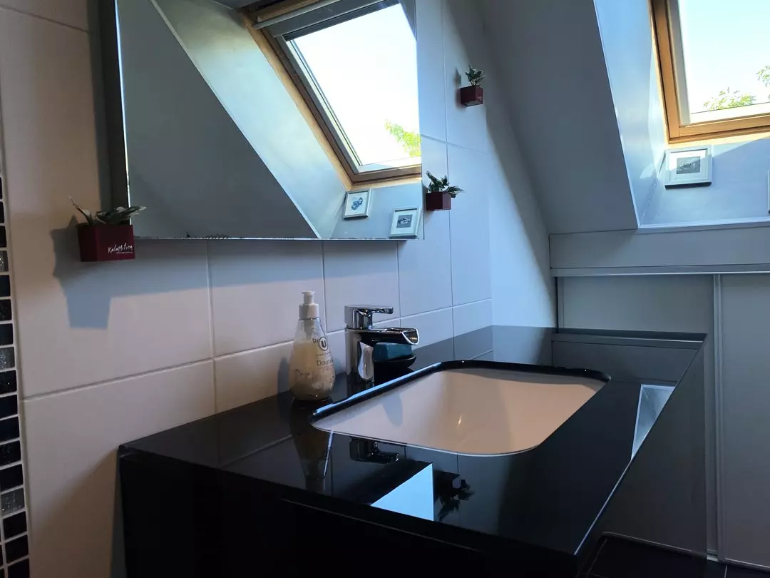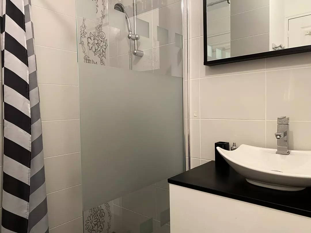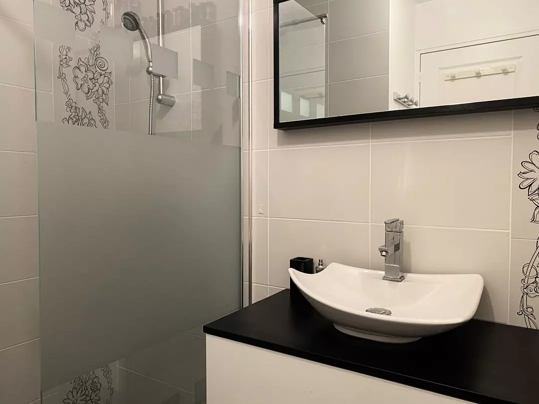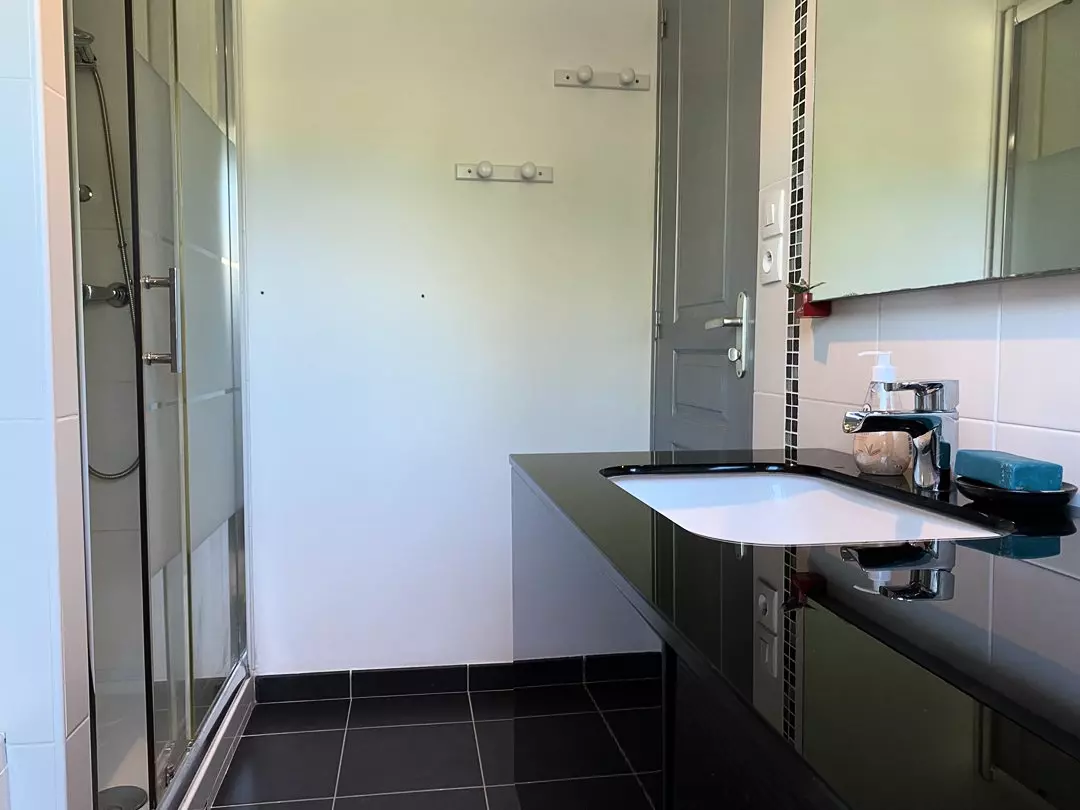 - Une salle d'eau avec douche et meuble vasque ;
