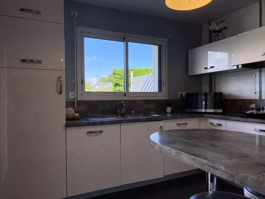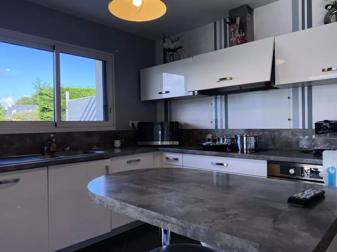 - Une cuisine ouverte sur la pièce de vie et sur la terrasse extérieur ;