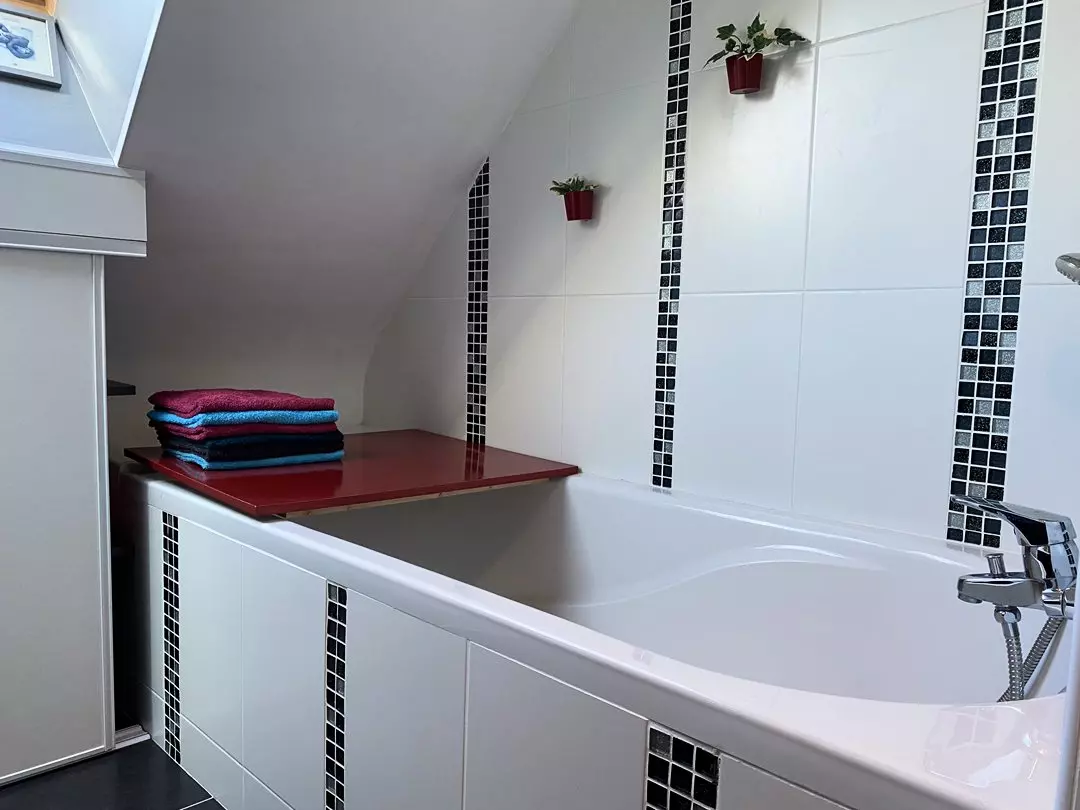 - Une salle de bain avec baignoire et douche ;