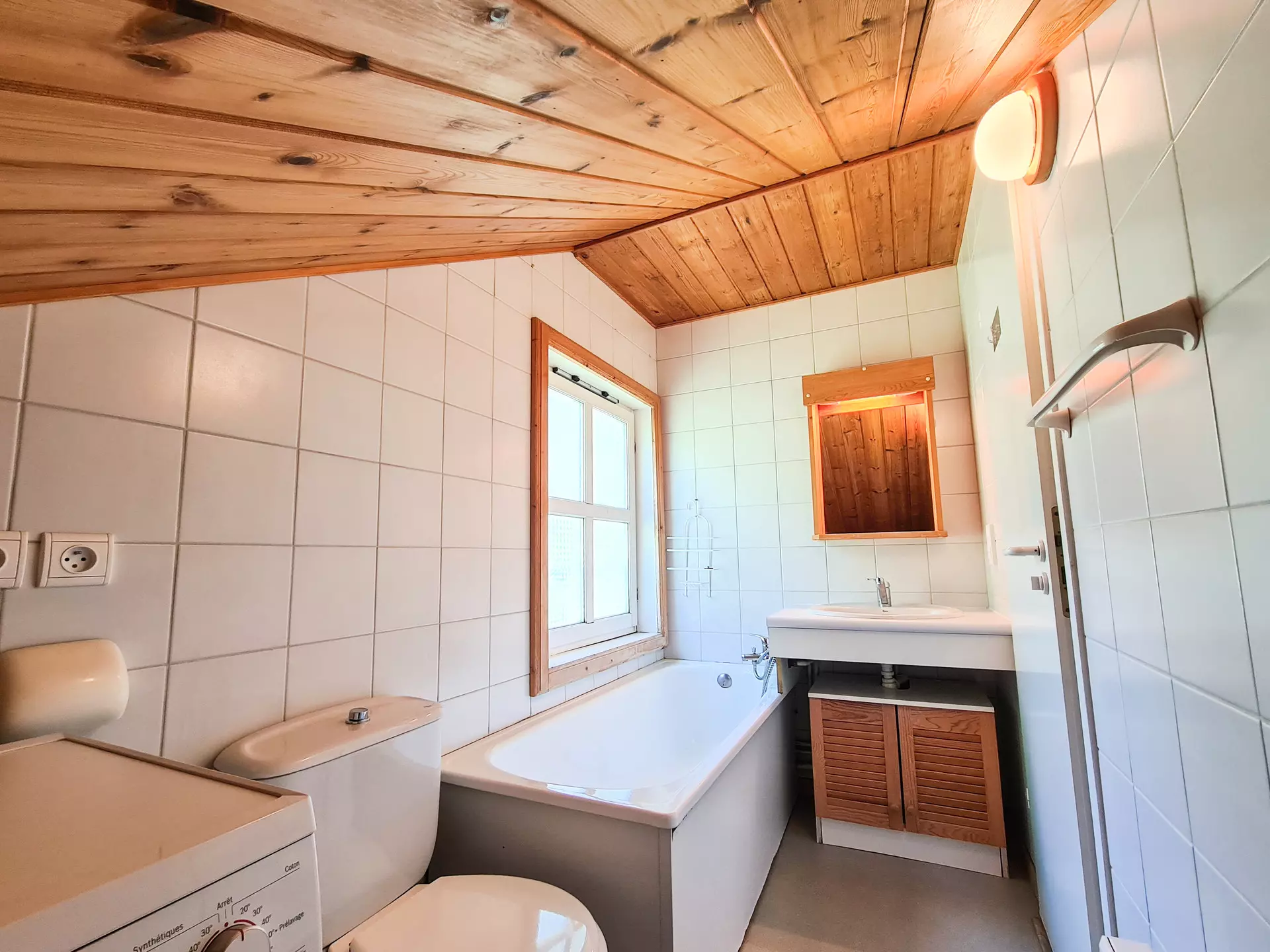 - 1 salle de bain avec lave linge et toilettes