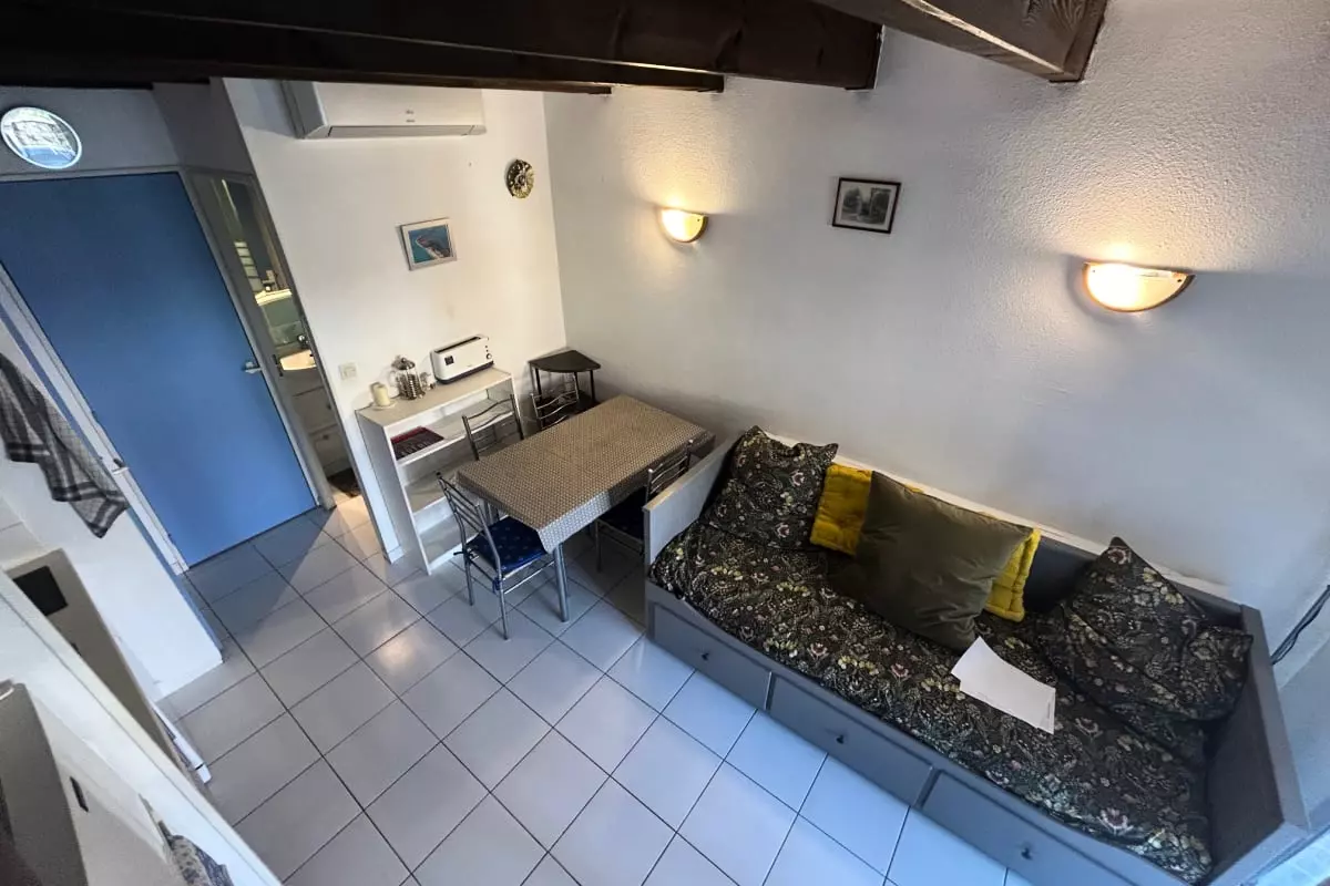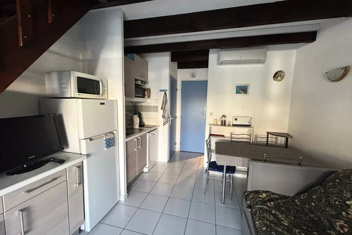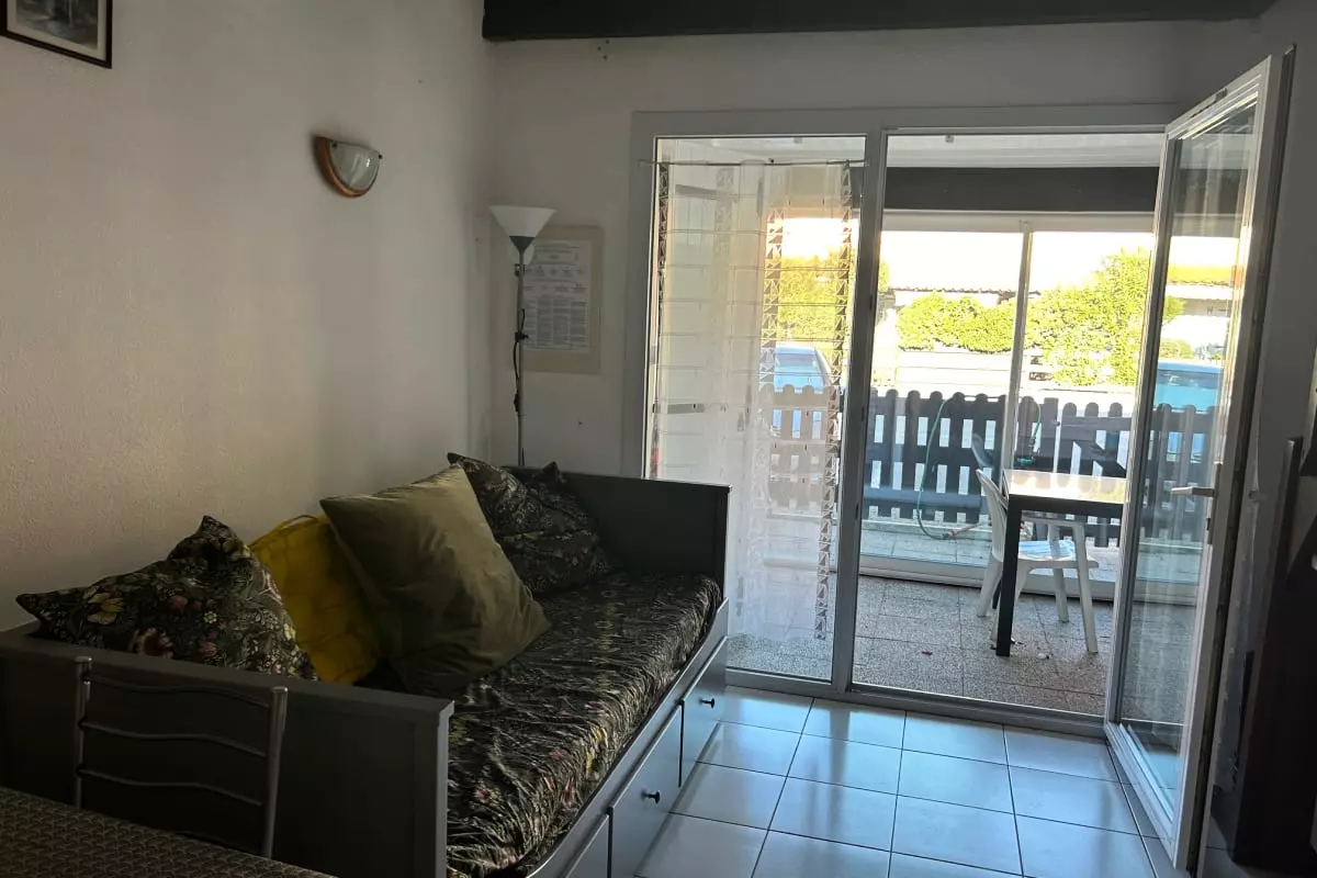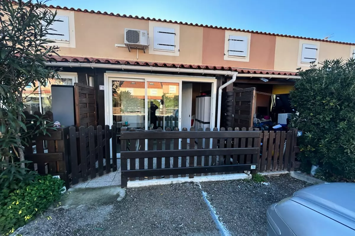 Dans une jolie résidence, à deux pas de la mer. Cette maisonnette climatisée, elle se compose de 3 lits en 90 cm et 1 lit en 140 cm. Un salon avec cuisine ouverte et d'une salle de bains Idéal pour vos vacances entre amis , à proximité des commerces et restaurant , bénéficiant d'un parking privé.