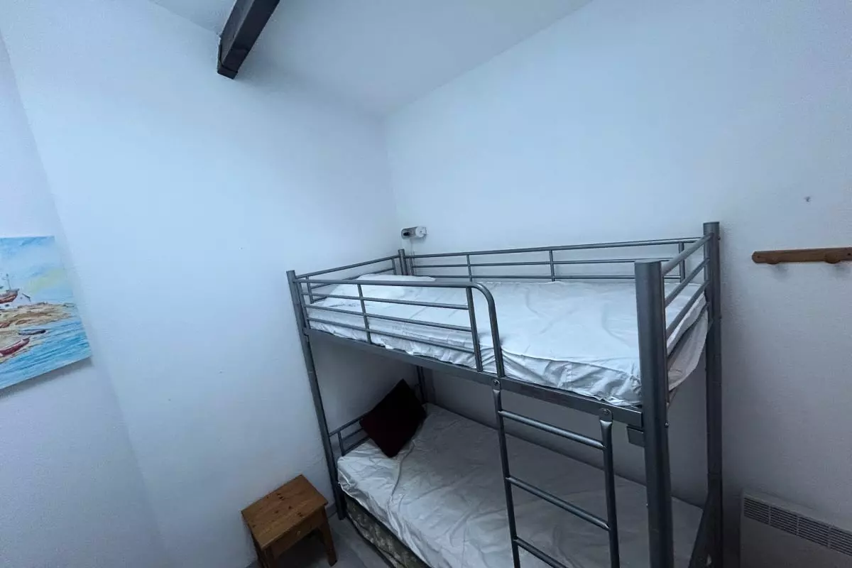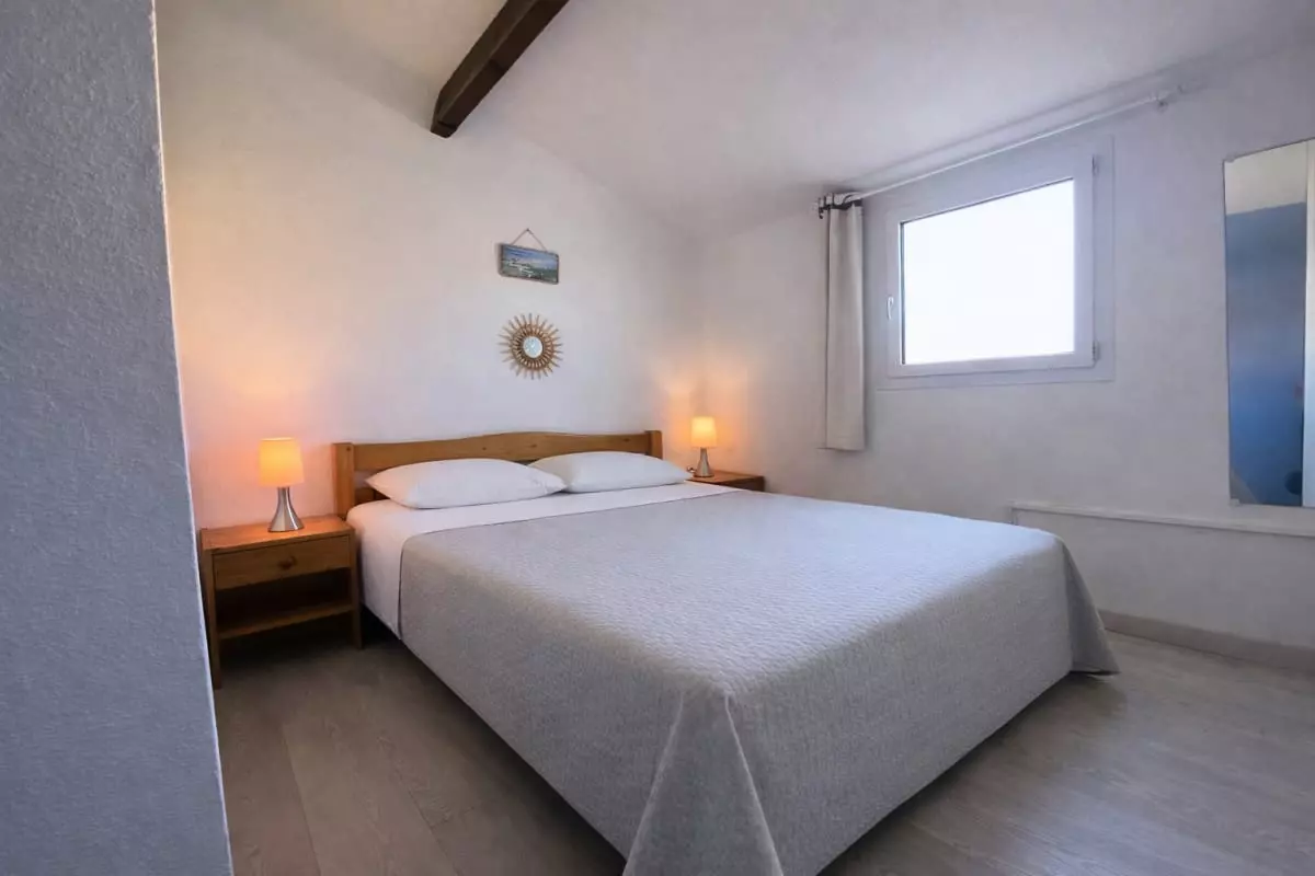 Dans une jolie résidence, à deux pas de la mer. Cette maisonnette climatisée, elle se compose de 3 lits en 90 cm et 1 lit en 140 cm.
