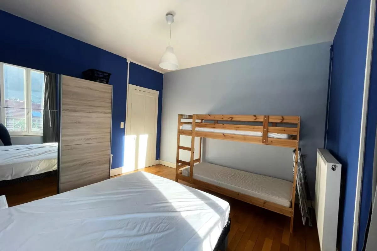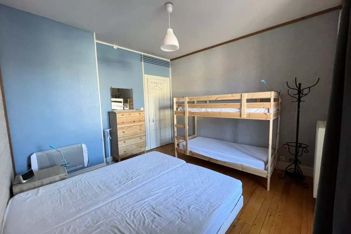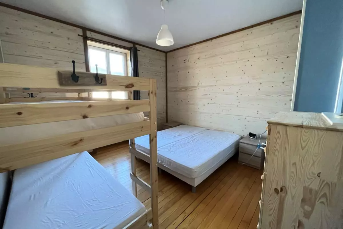 - deux chambres avec un lit double, deux lits superposés et deux lits simples ;