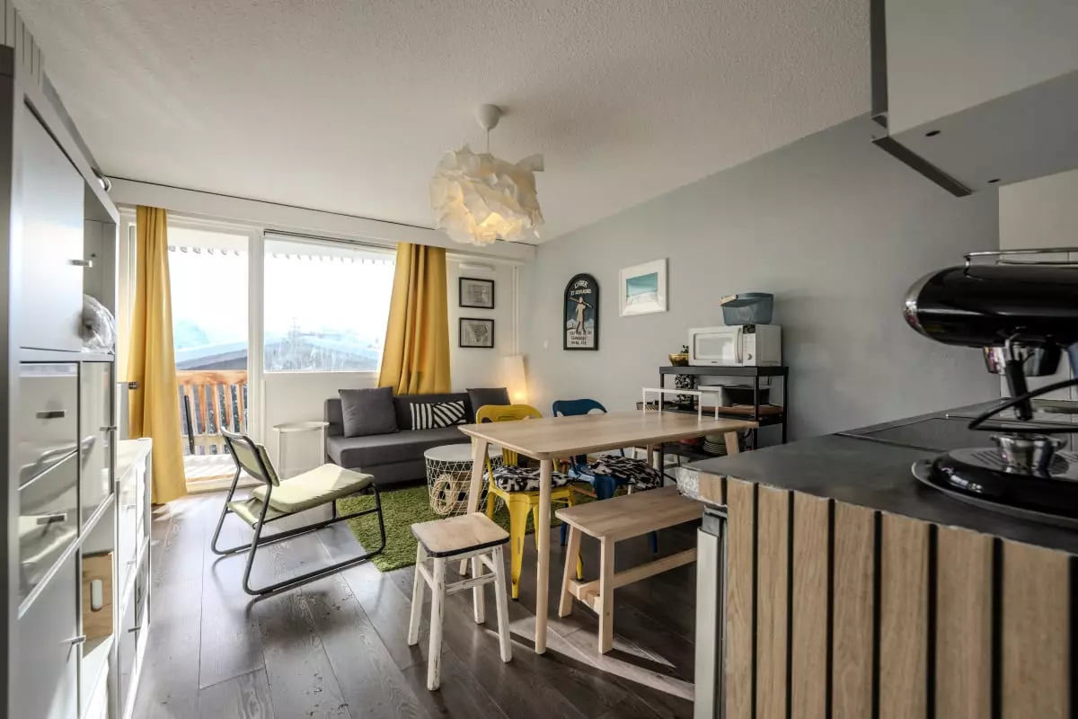 🎿 L’appartement offre un espace chaleureux et bien agencé, pensé pour un séjour pratique et agréable. La cabine permet de séparer les espaces nuit, idéale pour les familles ou les séjours entre amis. Le séjour lumineux s’ouvre sur un balcon, parfait pour prendre un café face aux sommets ou se détendre après une journée sportive ⛷️🏂