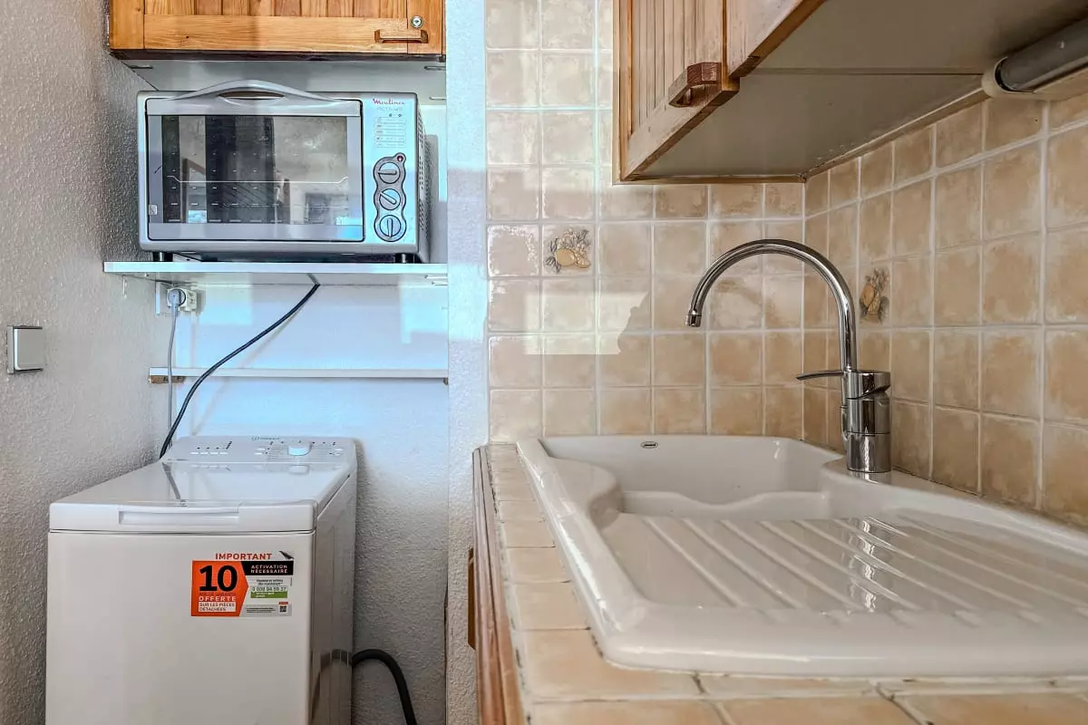 Vous pourrez profiter du balcon faïencé et ensoleillé tout en admirant le massif des Ecrins et le glacier des deux Alpes.