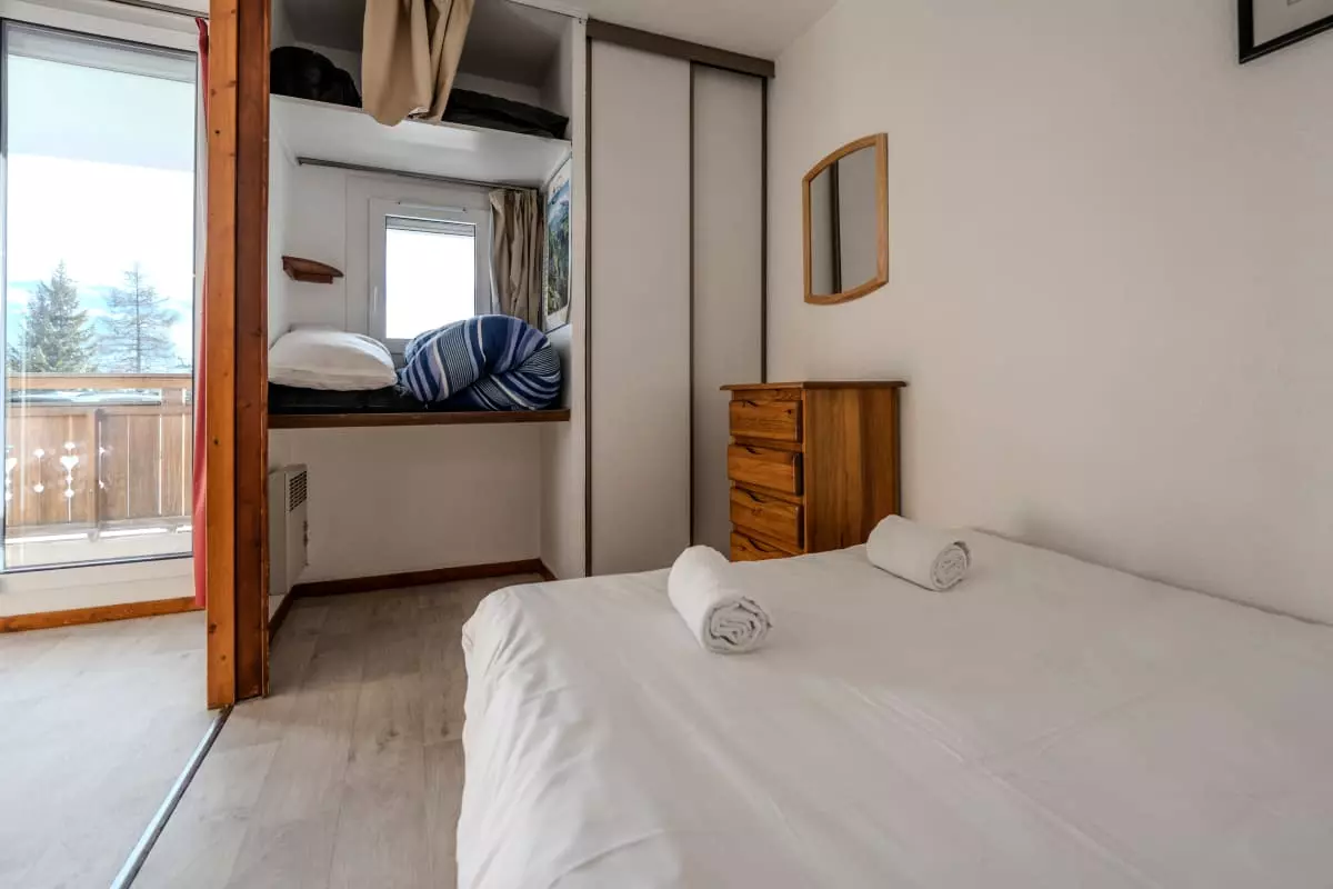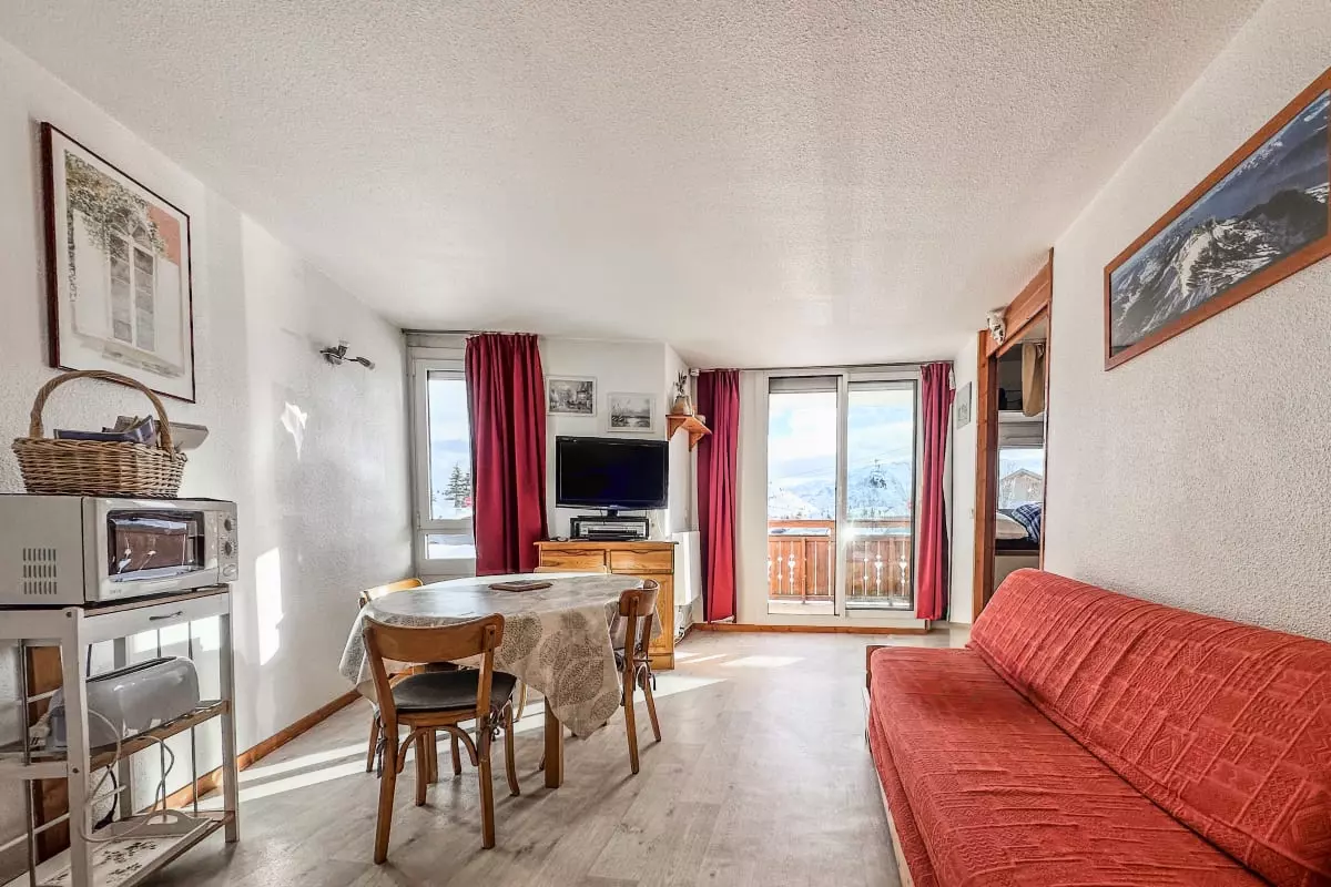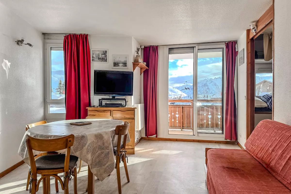 🏢 Idéalement situé plein sud, cet appartement lumineux de 36m² et tout confort a été entièrement rafraichi en mai 2019. Il peut accueillir 2 à 6 personnes. Il est en rez-de-chaussée de montagne donc surélevé.