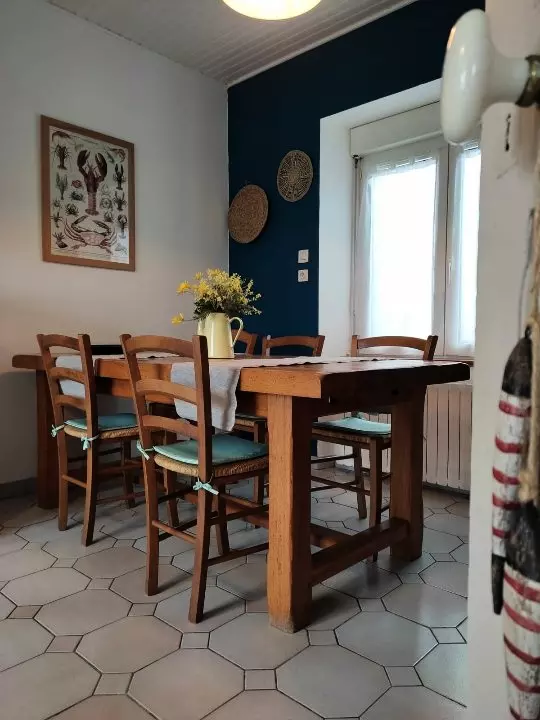 Les Mouettes maison près de la mer, belle vue sur la mer, jardin et parking privé. 80 m², aménagée et équipée pour 4 à 5 personnes. Au rez-de-chaussée : entrée, cuisine aménagée et espace repas, séjour-salon, salle de bains, WC séparé. A l'étage : deux chambres, salle d'eau avec douche et WC. Linge en option. Animaux non acceptés. Logement non fumeur. Ménage final inclus. Internet 4G (box Travel Wifi).