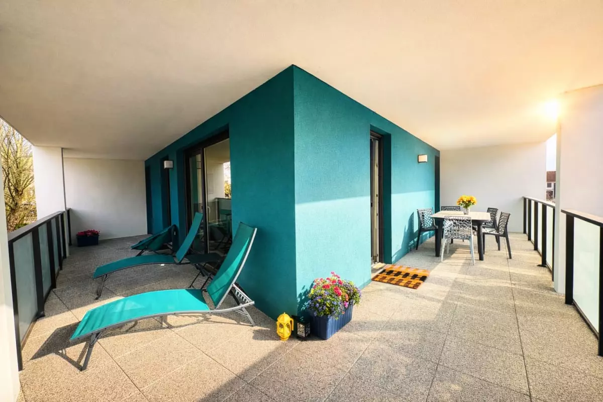 Sa véritable pépite : une terrasse exceptionnelle de plus de 35 m², en L, qui entoure le logement et offre une vue magnifique sur la rivière Ill. Un spot idéal pour le petit‑déjeuner au soleil, un apéro au calme ou une soirée détente en plein air.