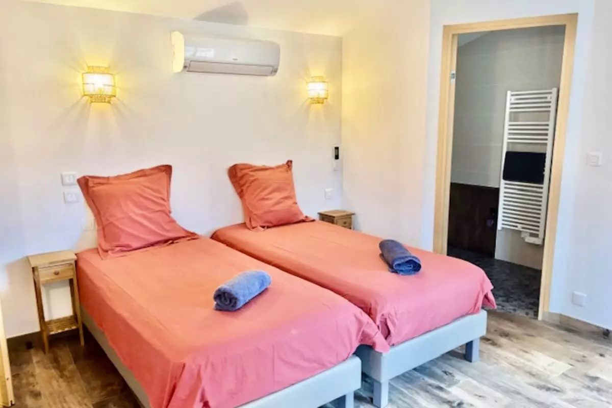 La maison est composé de trois chambres avec 2 salles de bains, ainsi que d'un canapé-lit dans le séjour.