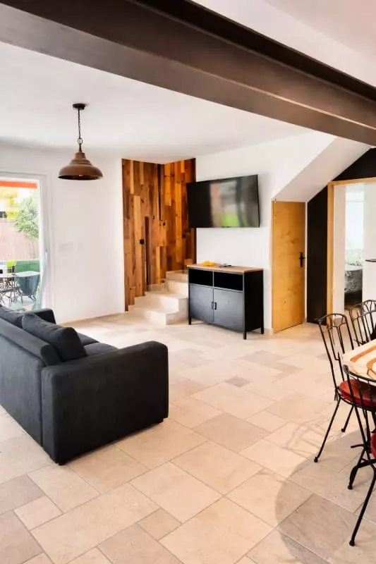 Au rez-de-chaussée vous trouverez aussi une salle d’eau avec une douche à l’ italienne ainsi qu’un WC séparé.