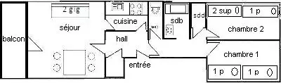Appt 4 pièces, 8 pers, 3 chambres et 2 salles de bain, environ 80m², exposé Sud avec balcons, vue sur les pistes, au 1er étage sans ascenseur - Cuisine ouverte : 4 plaques vitrocéramiques, réfrigérateur grand modèle, four multifonction, lave-vaisselle - Séjour : coin repas, coin salon TV - Chambre 1 : 1 lit double 160cm, Chambre 2 : 2 x2 lits superposés 80X190cm - Chambre 3 (sans fenêtre ) : 1 lit double 140cm - Salle de bain : baignoire et douche - WC séparés - Salle de douche et wc inclus. Lave-linge et sèche-linge - Literie couettes - Appartement non fumeur, animaux non admis. En option et en supplément: Ménage de fin de séjour, draps, serviettes, forfaits ski.