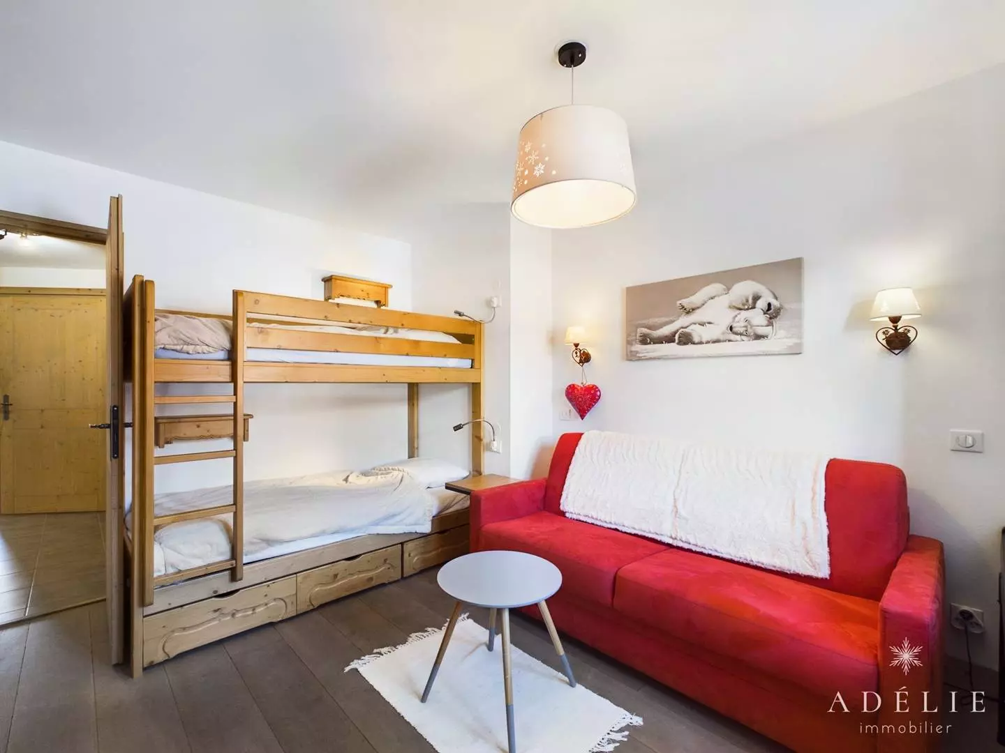 Chambre avec 2 lits superposés et canapé double d'appoint en 140.