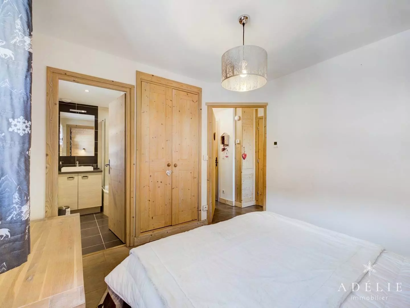 Chambre avec lit de 160cmx200cm et salle de douche attenante.