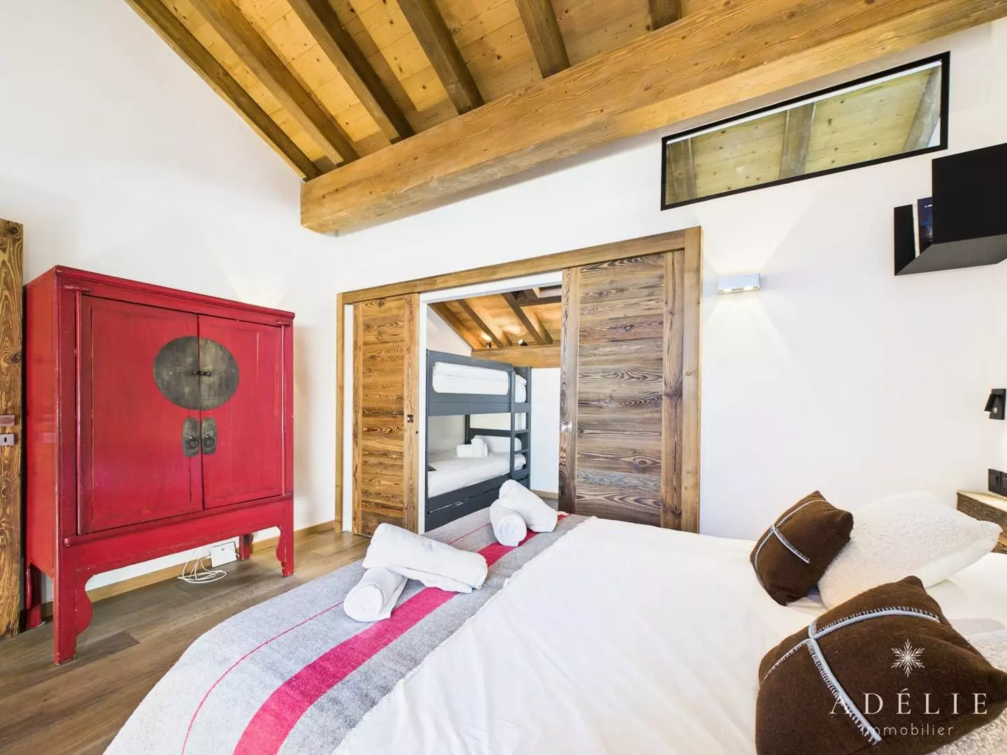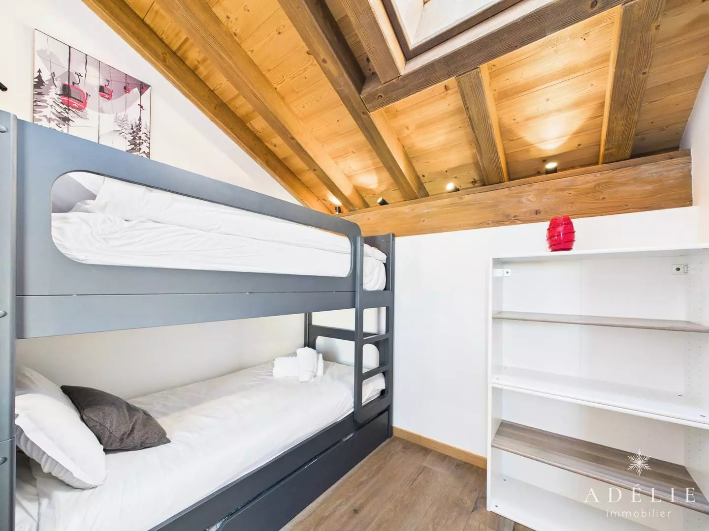 1 chambre au niveau 2 en deux parties: d'un côté un lit double et de l'autre deux lits superposés, avec une salle de bain.
