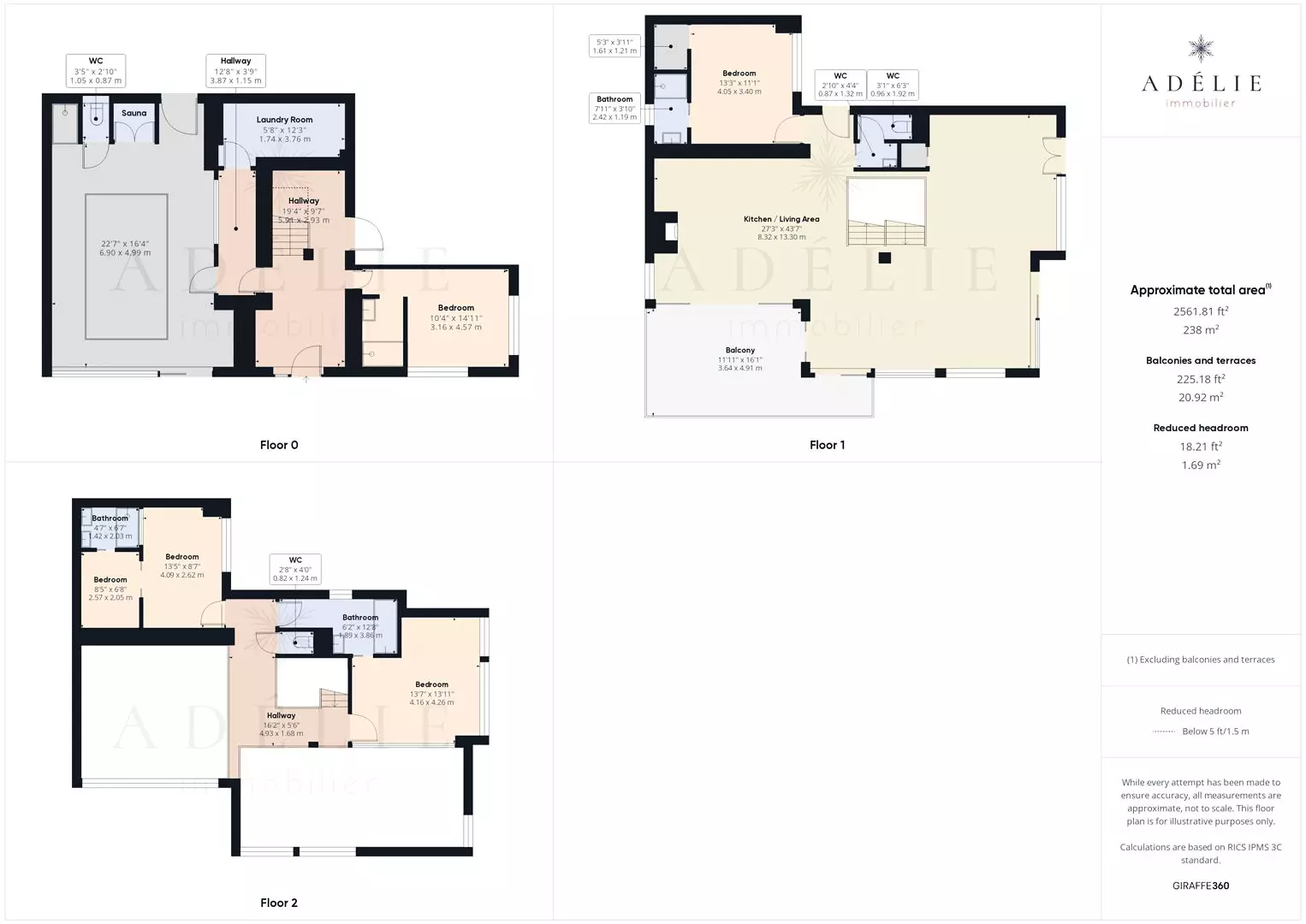 1 espace détente de 51 m2 avec piscine (4,5 m x 2,7 m) avec nage à contre-courant, sauna, douche, WC.