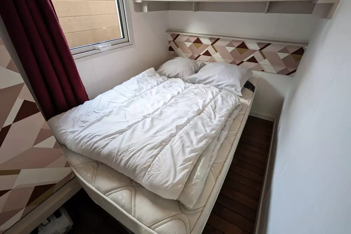 ArrayIl fait 35 mètres carrés, comprend deux chambres avec plusieurs rangements et peut accueillir jusqu'à trois personnes