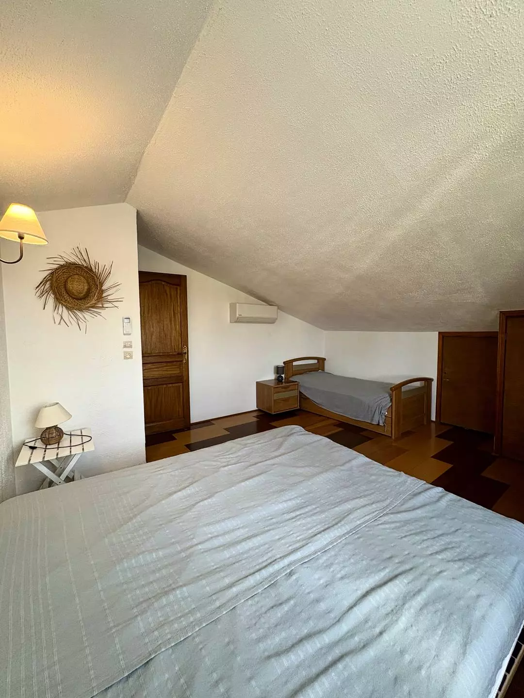 1 chambre avec 3 lits simples (90 cm), 1 chambre avec lit double 160 cm et rangements
