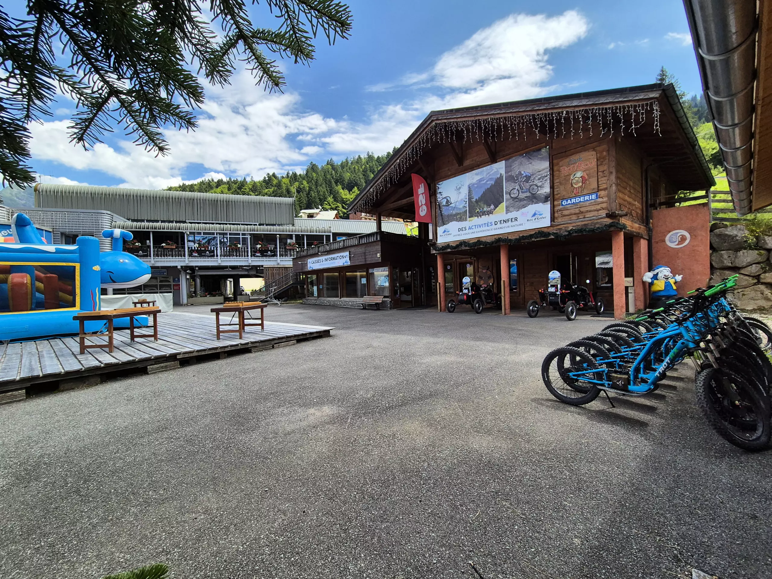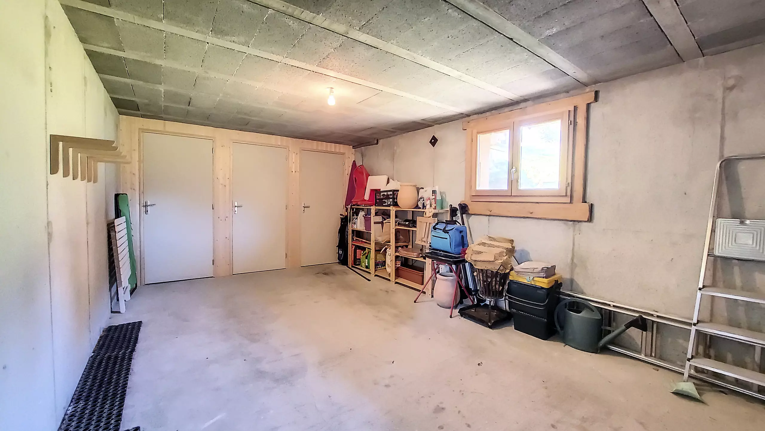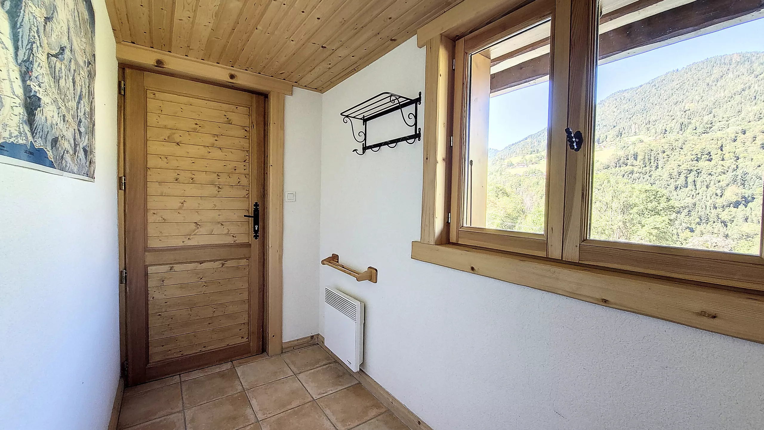 - Un double garage avec 3 caves, une fenêtre, un support mural pour skis et une porte donnant accès à l’intérieur du chalet